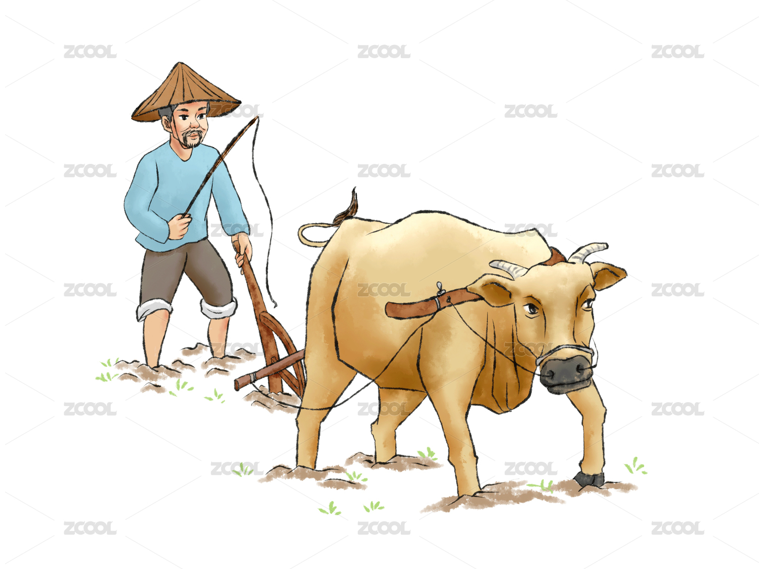 农民和耕牛插画