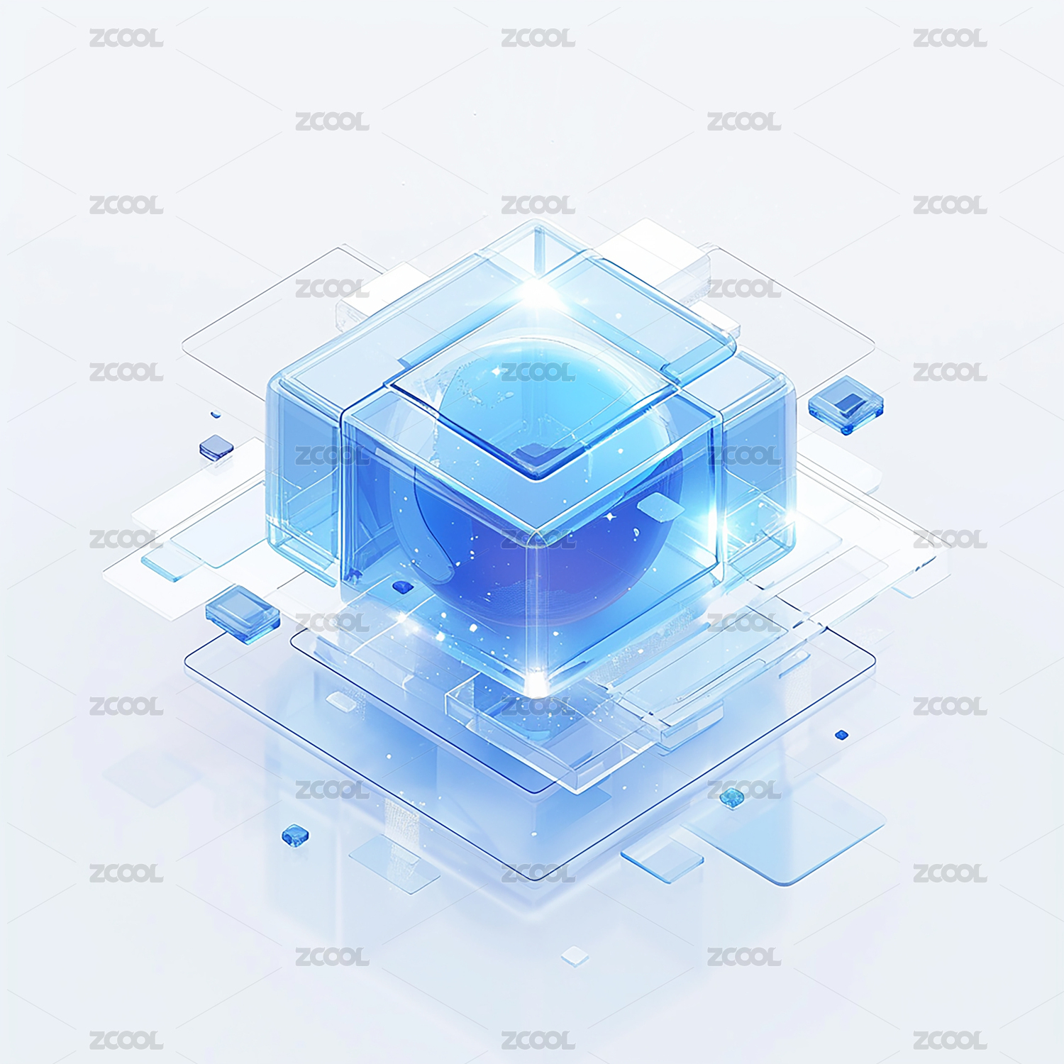 蓝色3D数据云服务存储创意金融科技素材