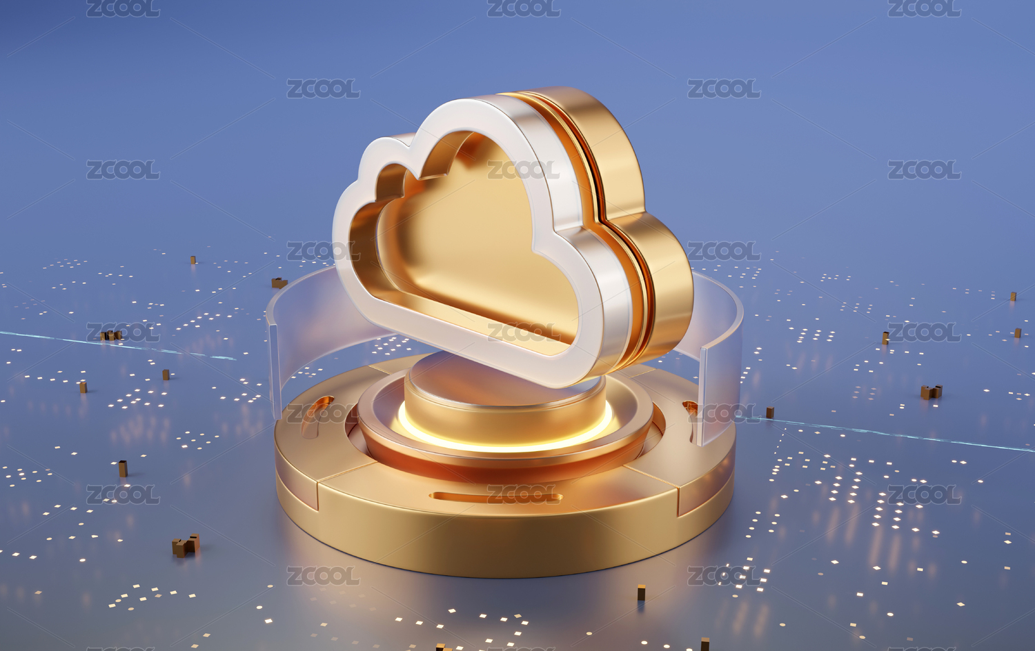 金色3D数据云服务存储创意金融科技素材