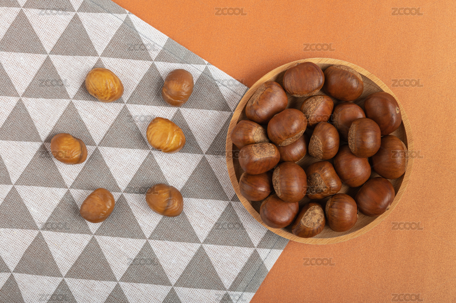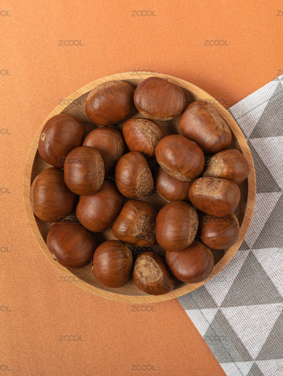 糖炒板栗橙色背景剥开的板栗