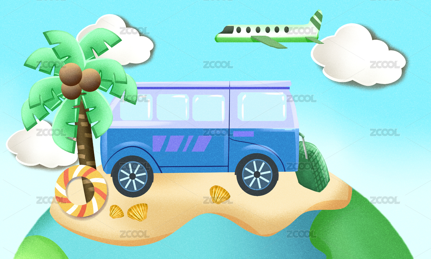 情侣自驾开车环球旅游,小清新世界旅游日插画