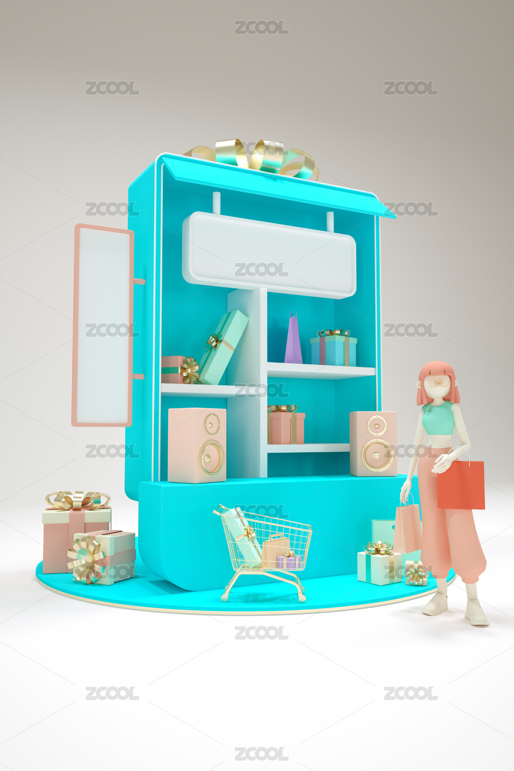 电商题材的商品展示用展台,3d渲染