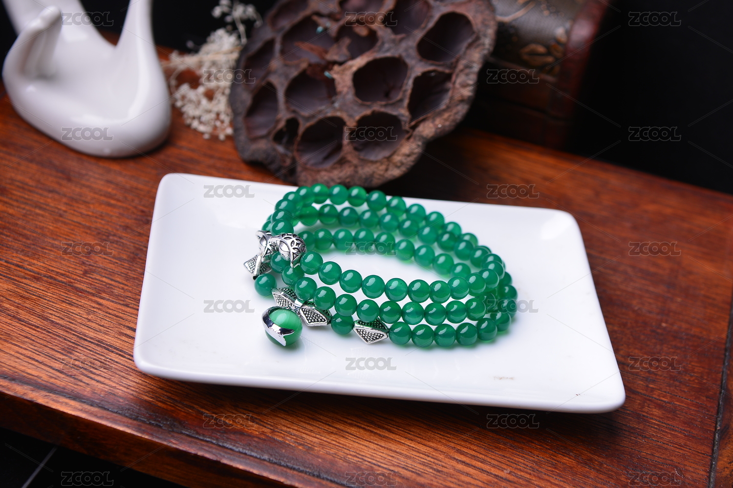 复古风格背景上的海南金丝贝壳手链项链特写图片