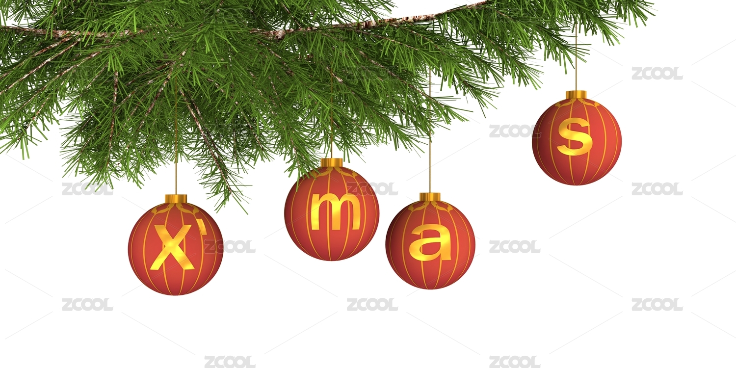 圣诞节题材的悬挂的圣诞装饰球,3d渲染