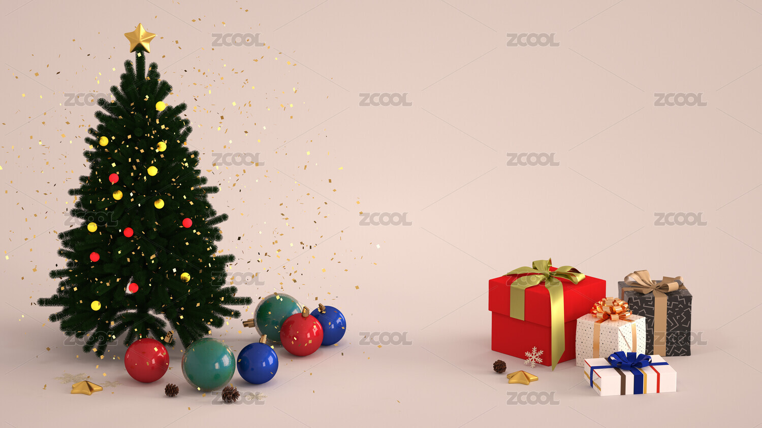 圣诞节题材的礼物盒、装饰球,3d渲染