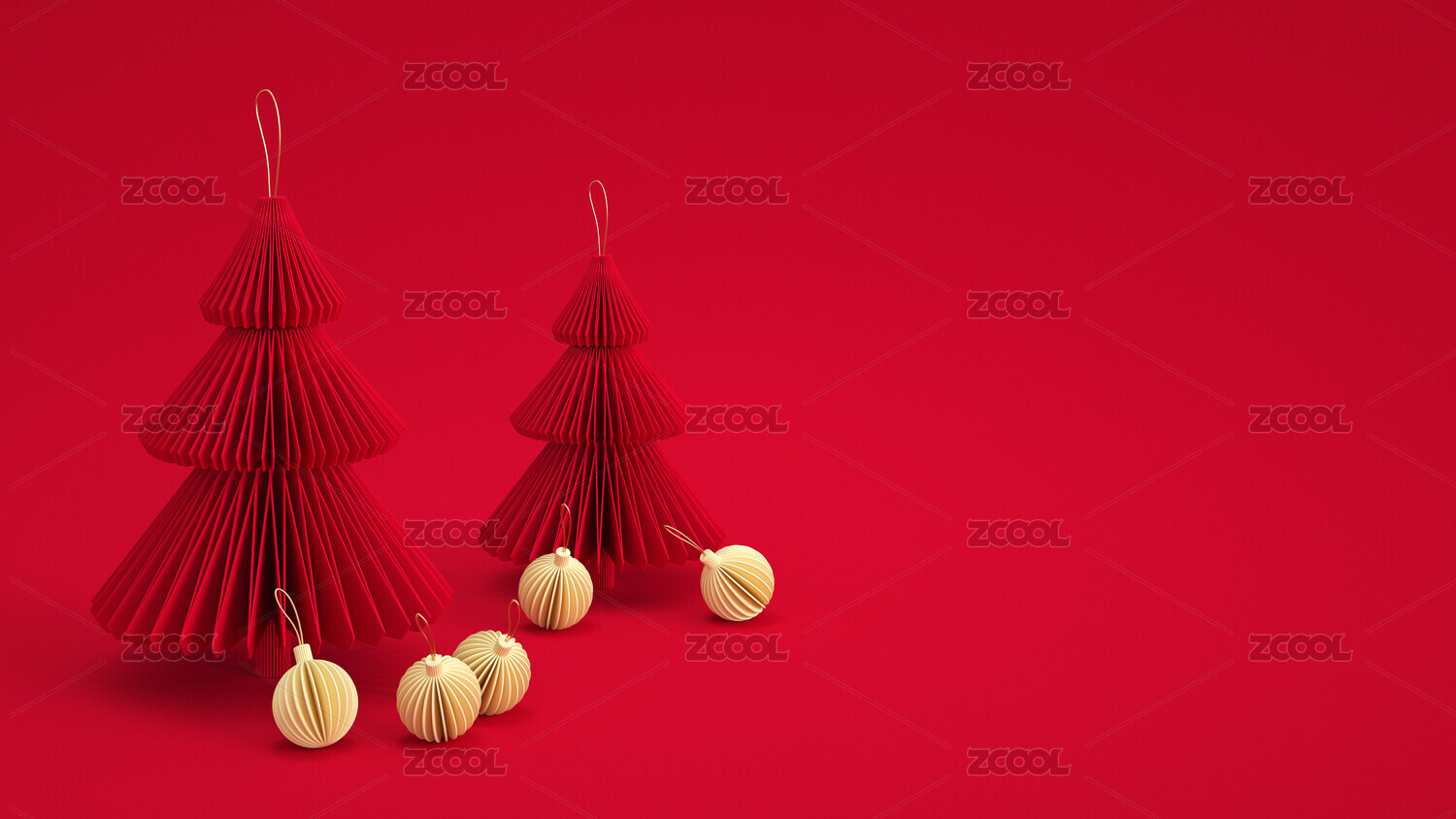 圣诞节题材的折纸圣诞树和装饰球,3d渲染