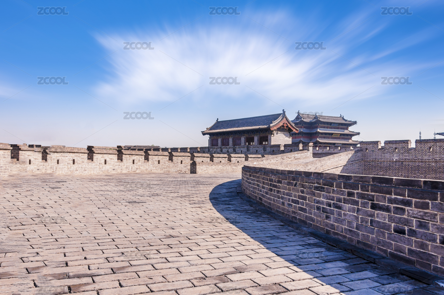 中国山西大同古城的城墙塔楼建筑群风光