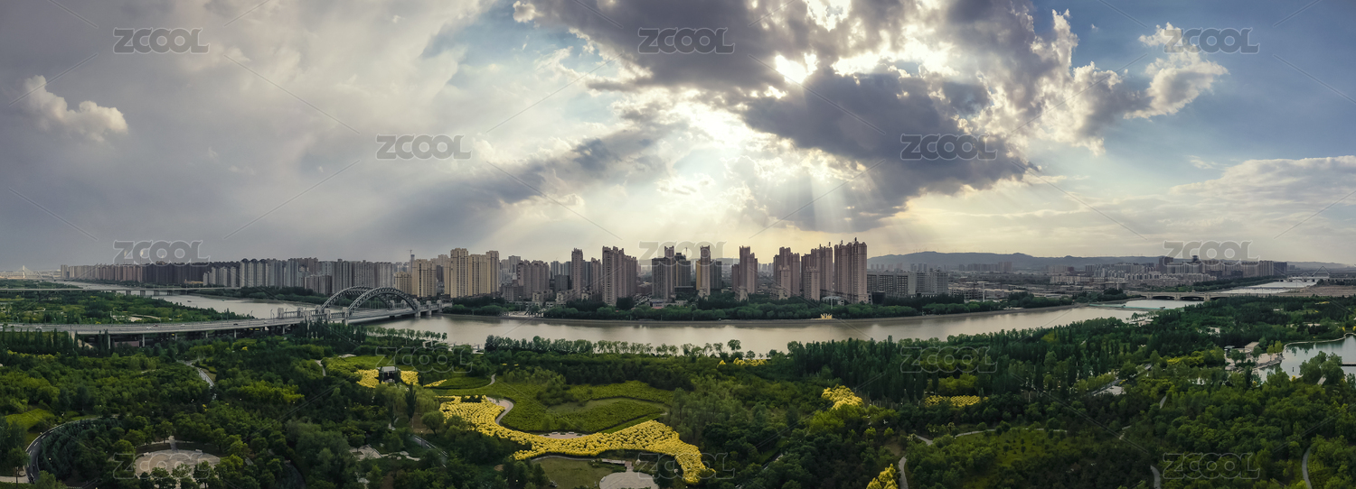 山西大同御河生态园航拍全景图