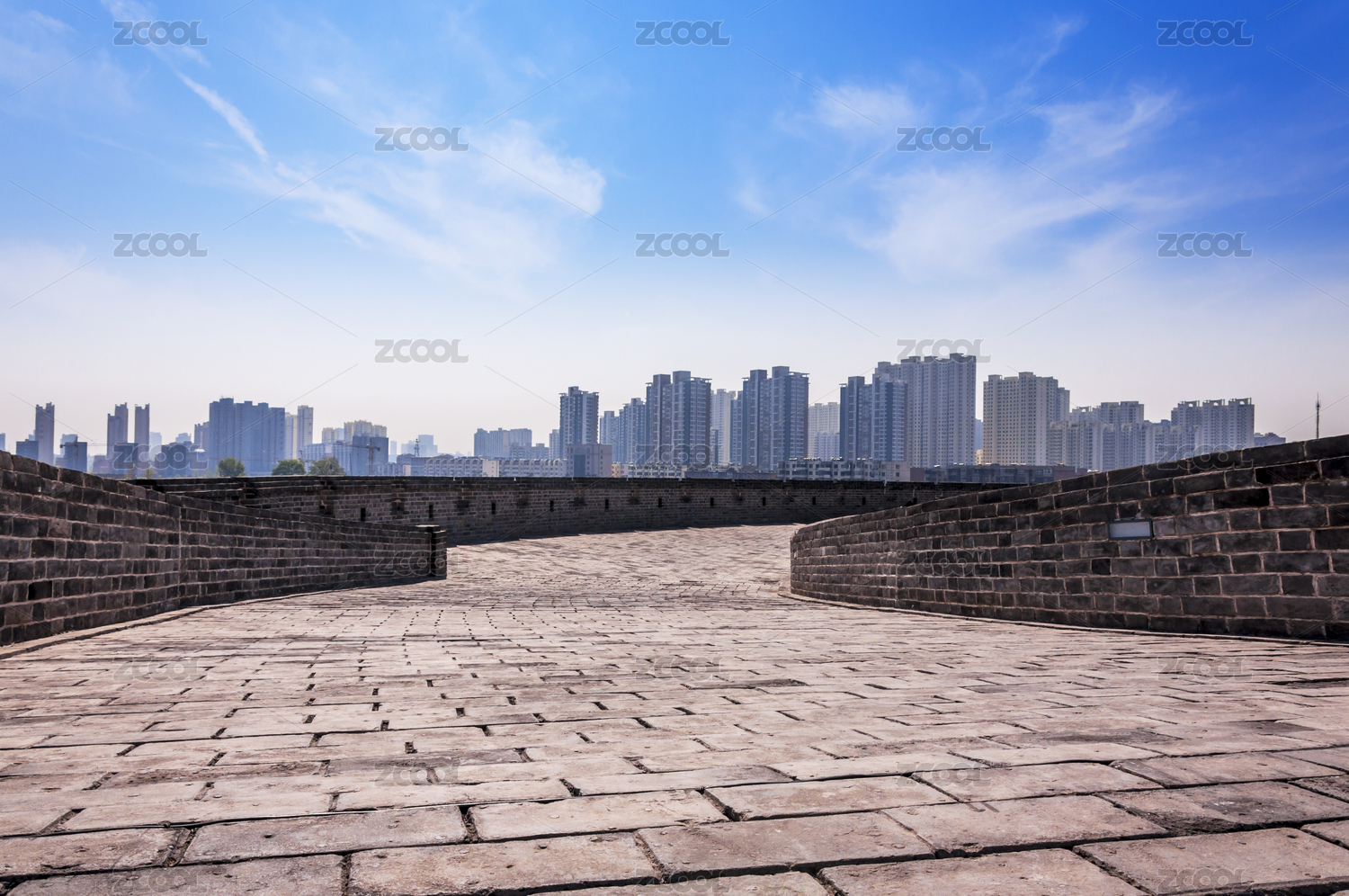 中国山西大同古城墙城市建筑群风光