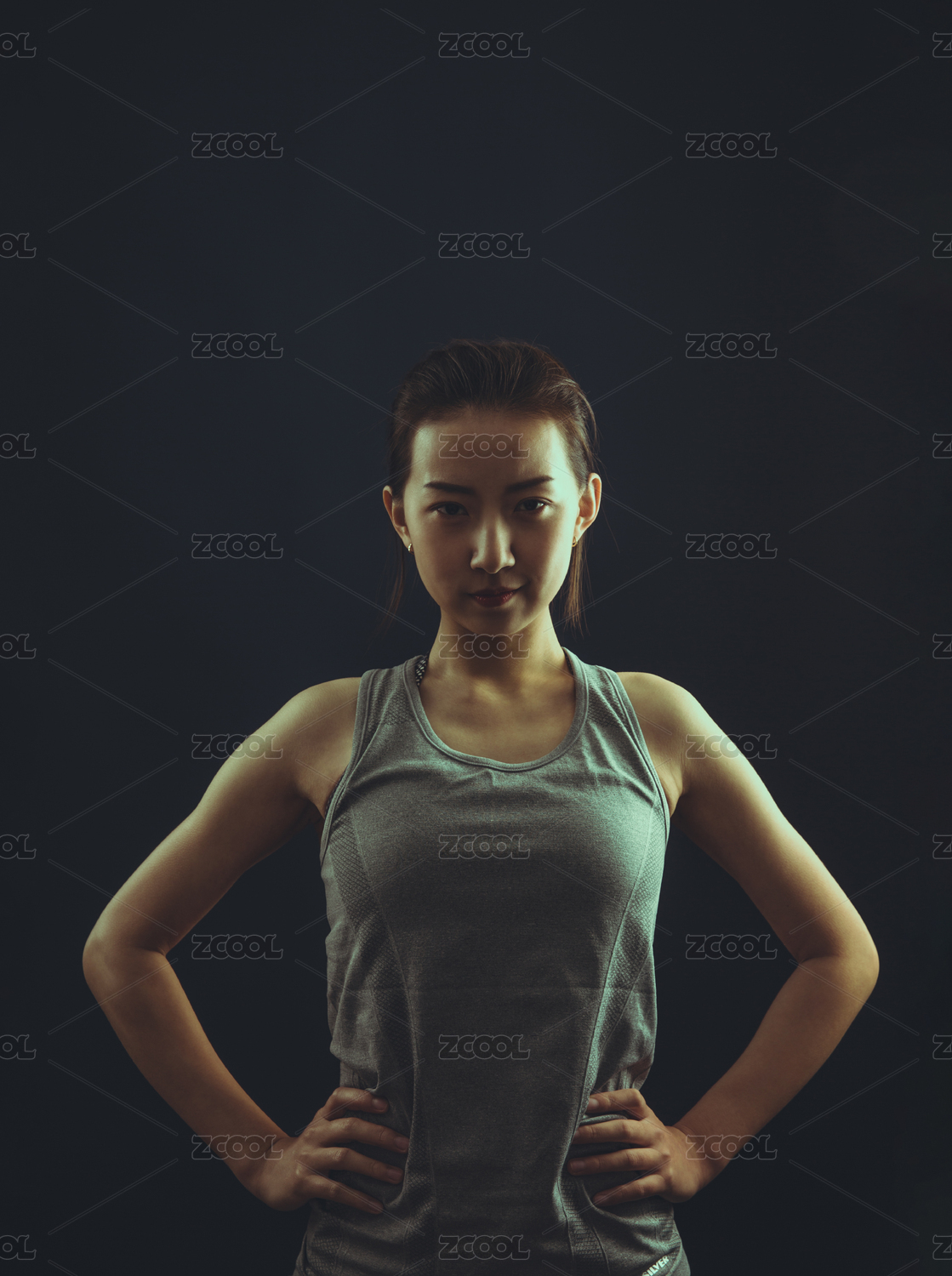 身穿运双手叉腰眼神坚定看向镜头的年轻女人