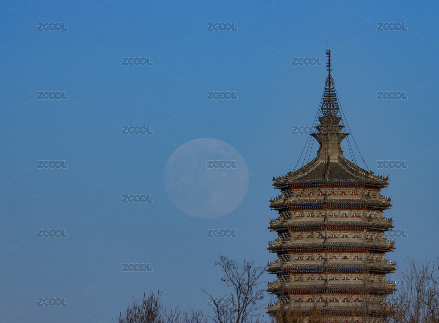 超级月亮与古塔同映