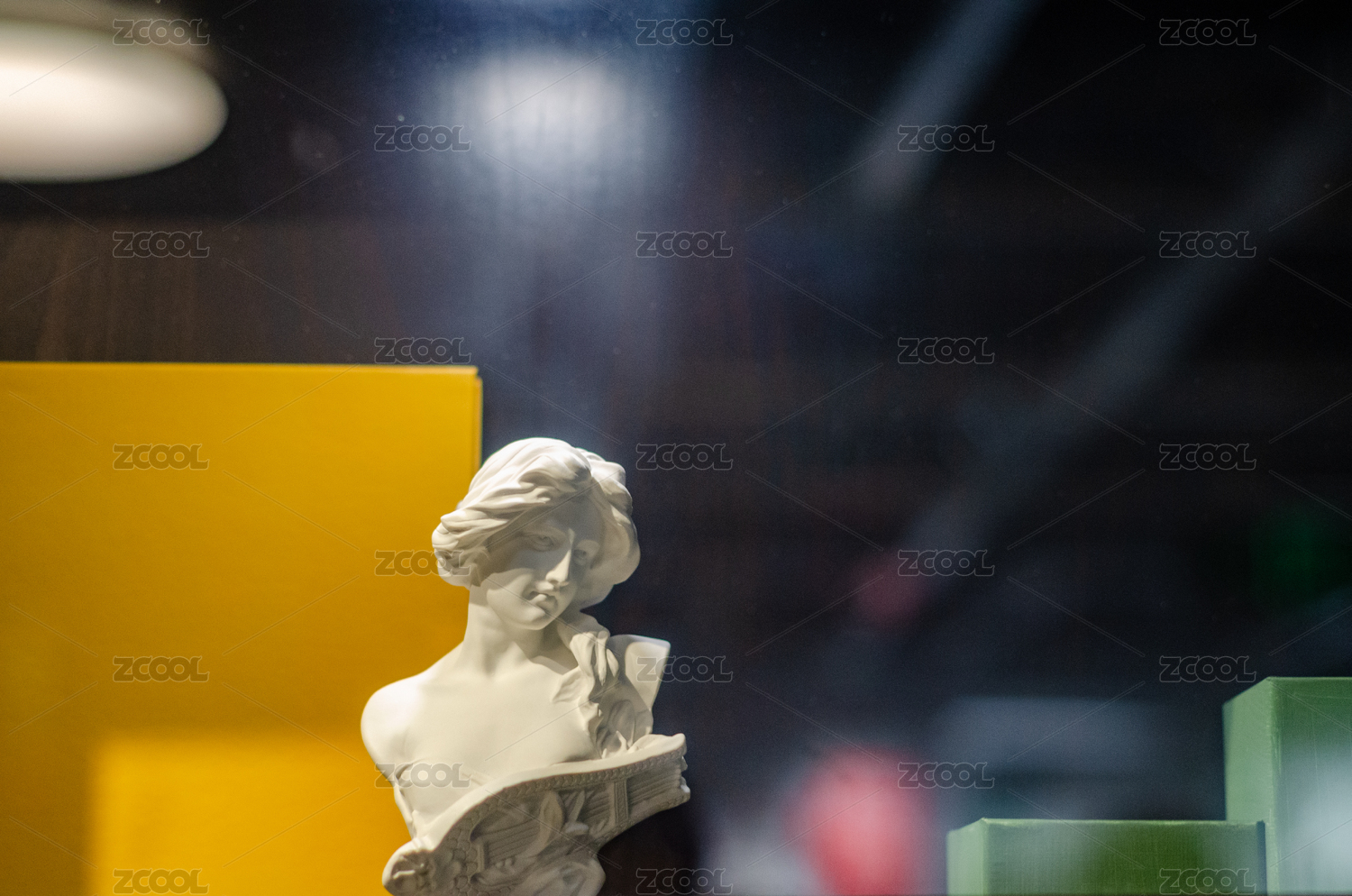 石膏几何体和开裂的地面、混凝土墙面,3d渲染