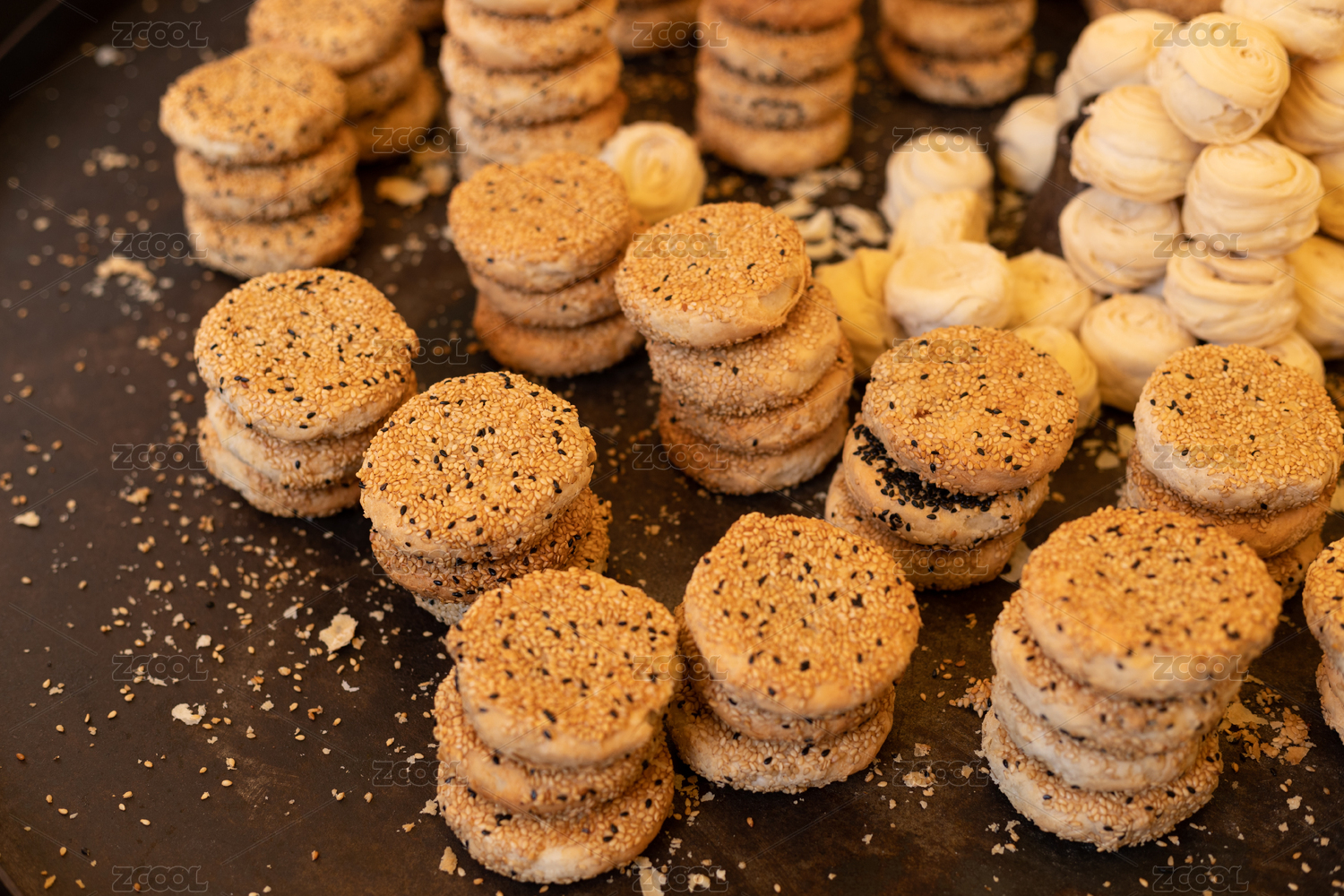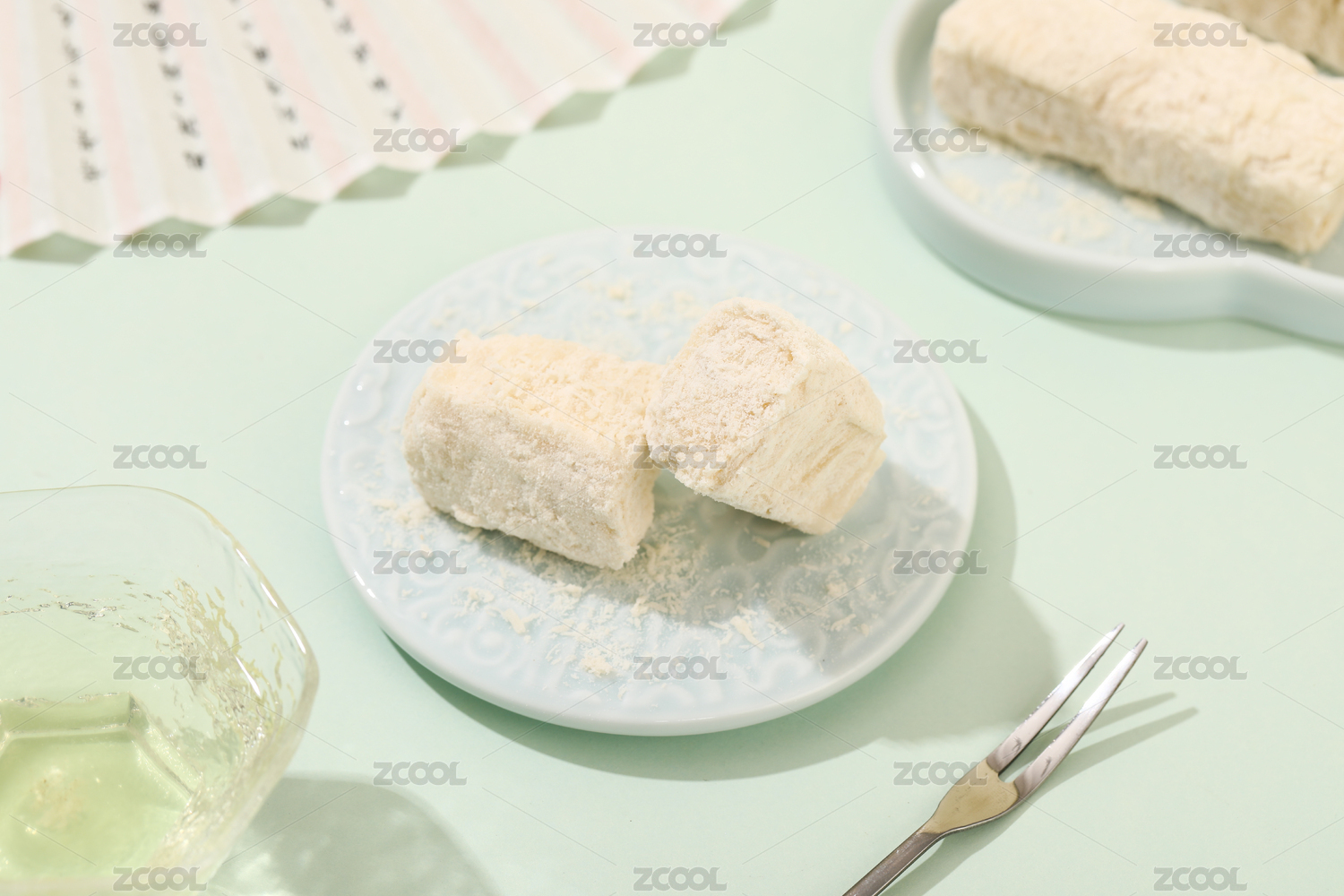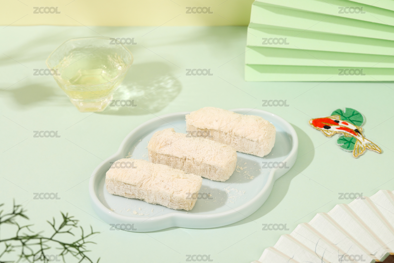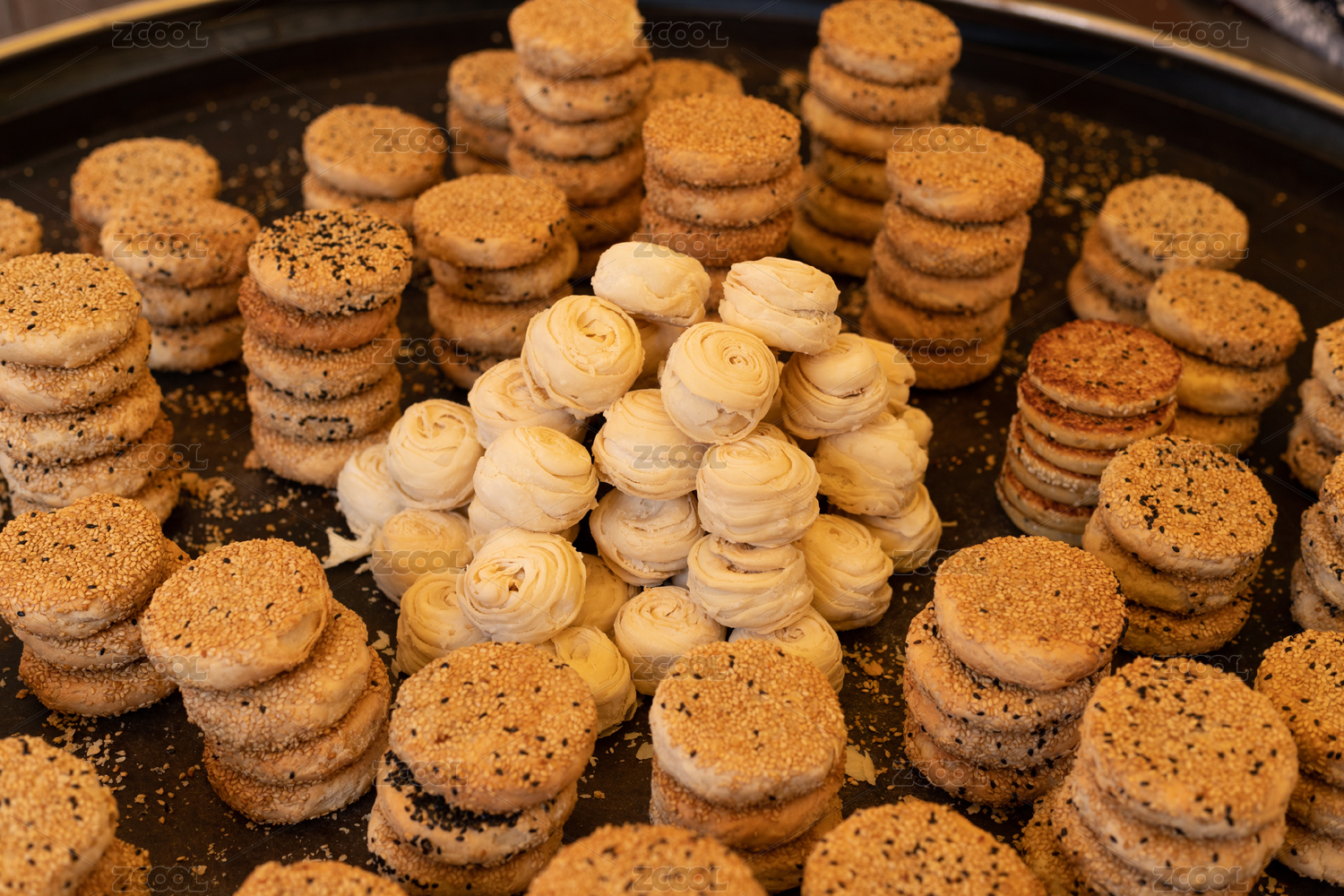 传统小吃龙须酥蟠桃酥摆放在桌面上特写