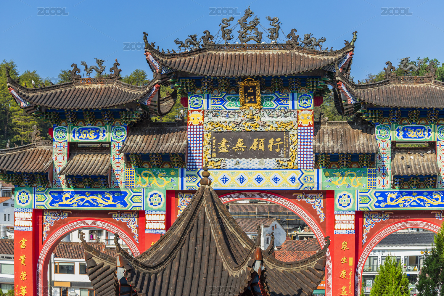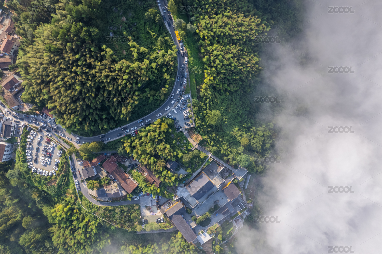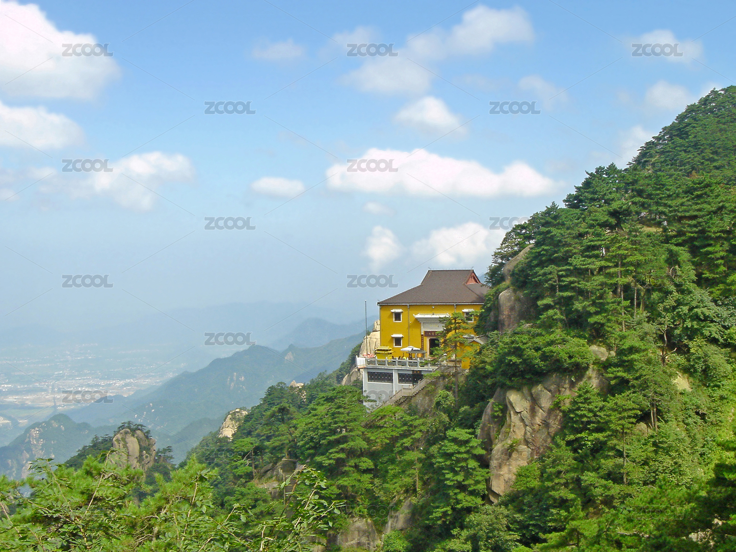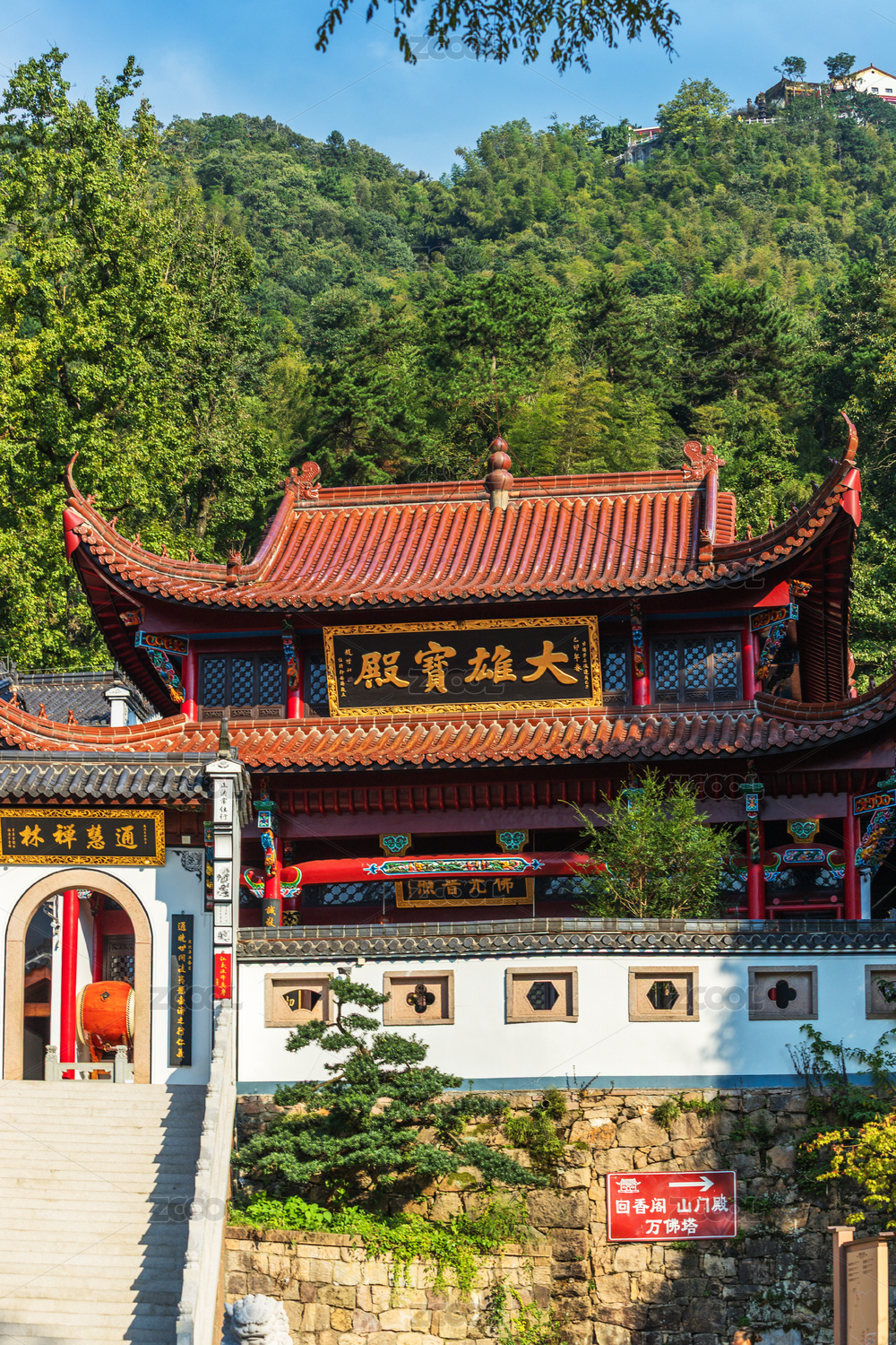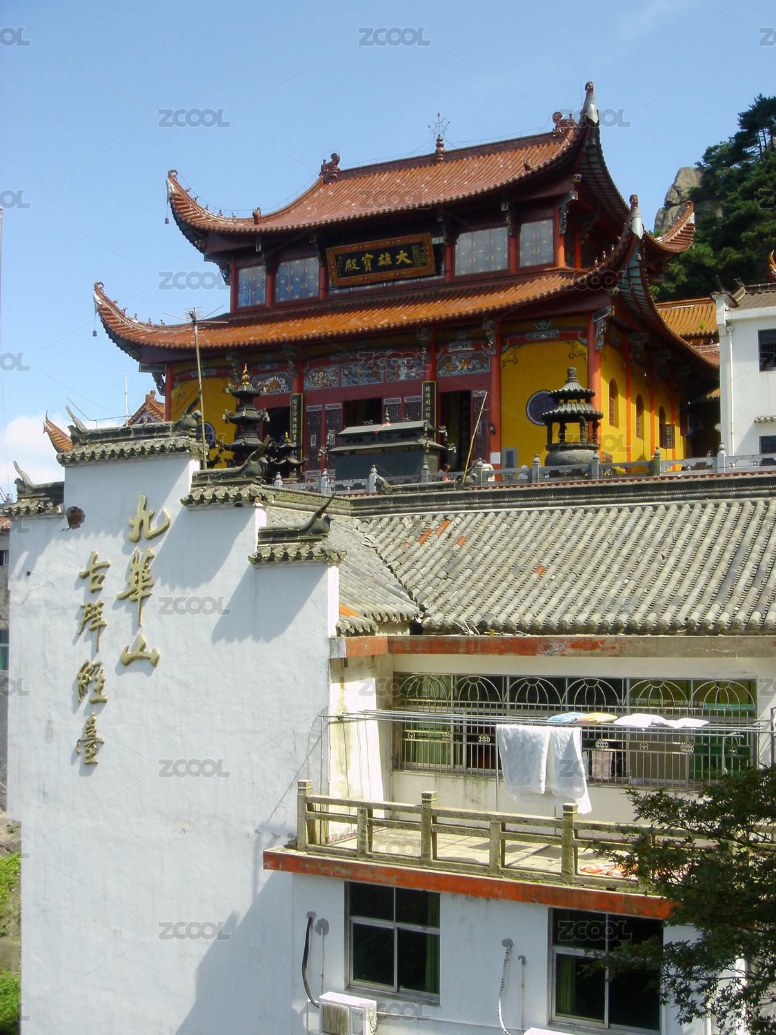 安徽池州青阳县九华山佛教建筑古拜经台俯拍