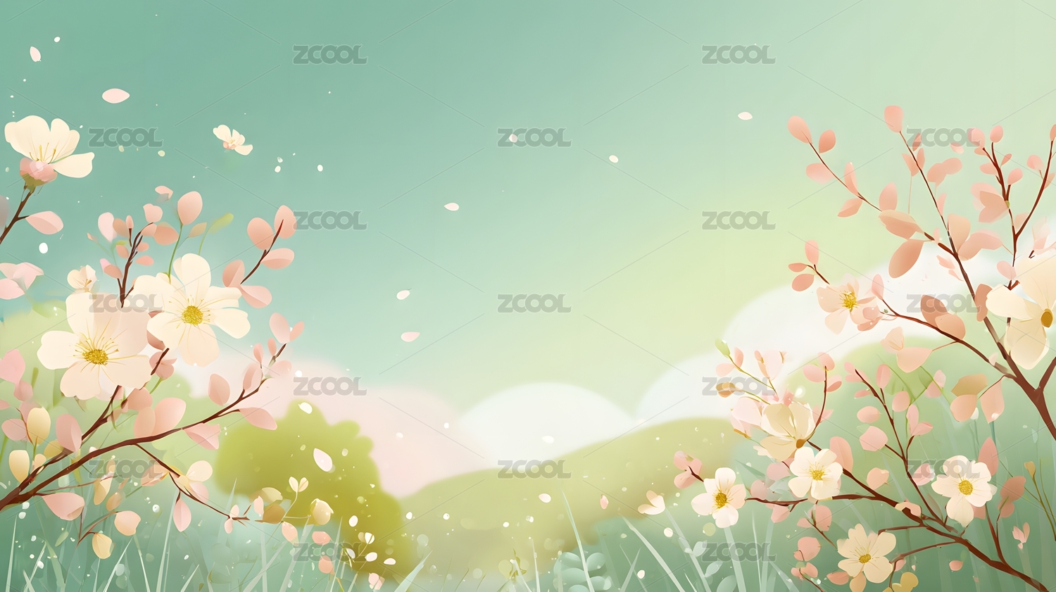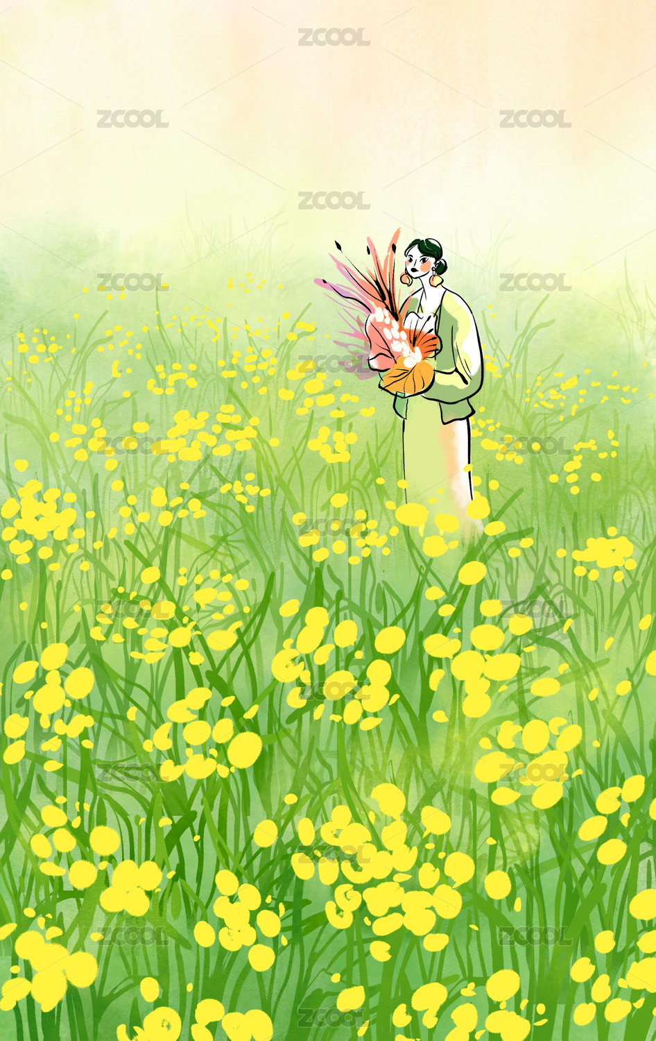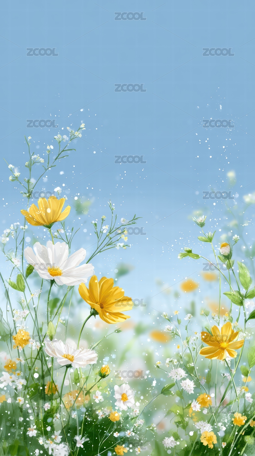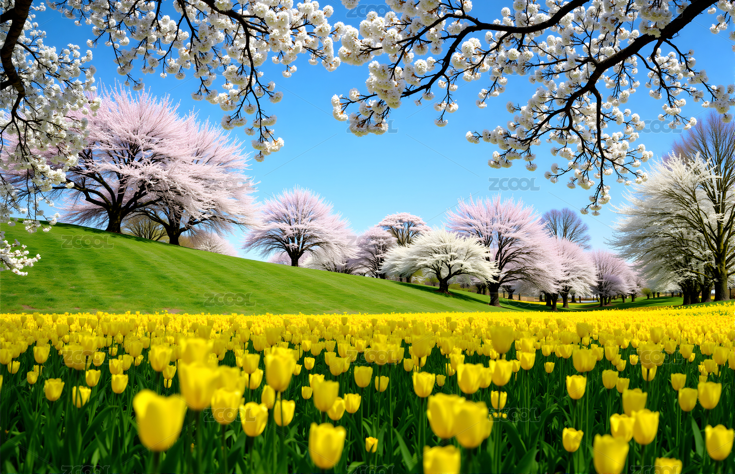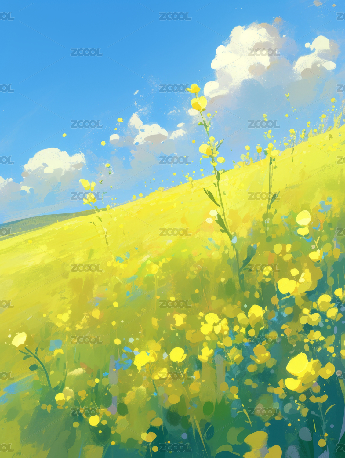 蓝天白云下 两只燕子飞舞在油菜花田上方
