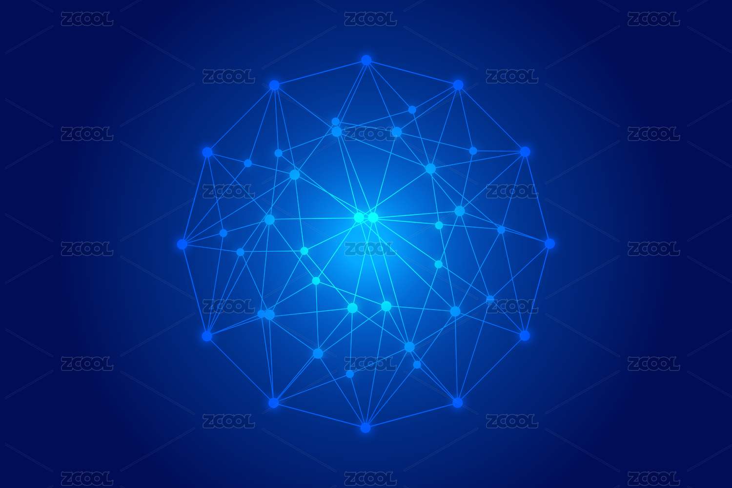 互联网技术、通过点线面链接的抽象图、科技背景图、蓝色圆形
