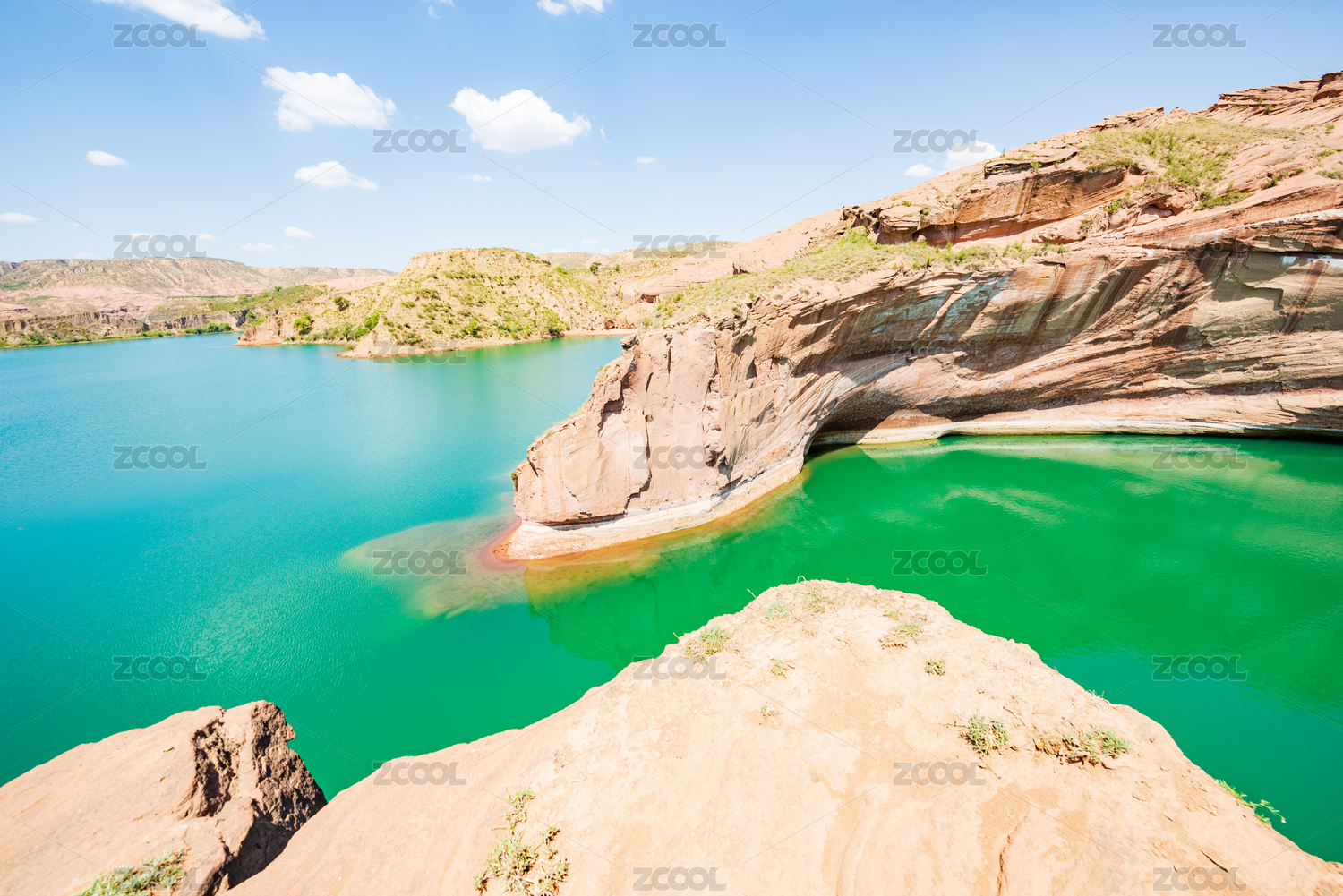 盛夏莲花池中的碧绿莲叶与红色荷花