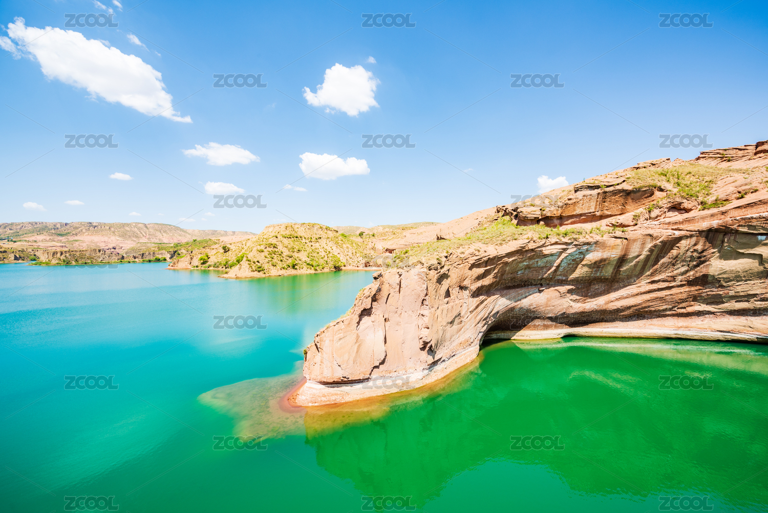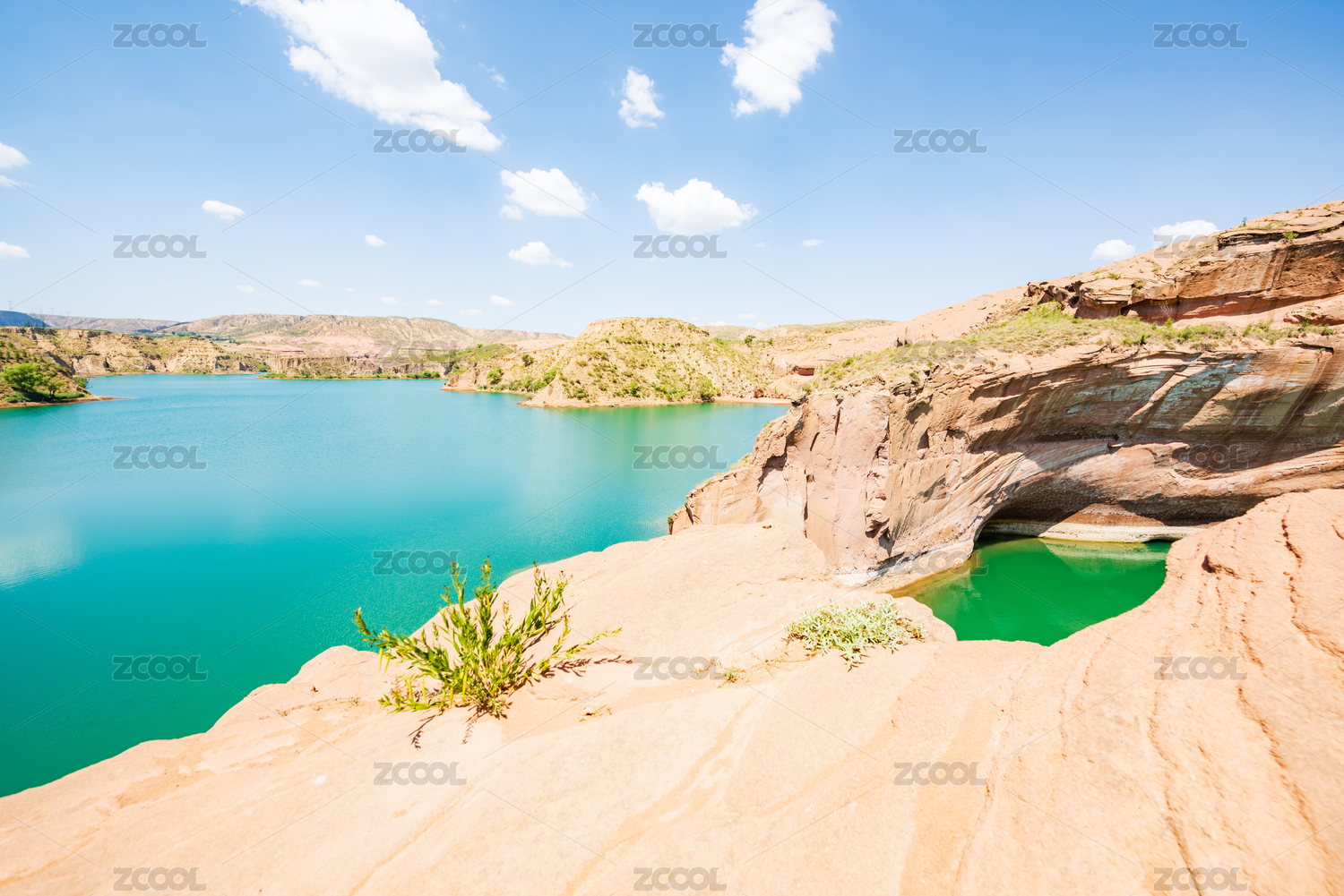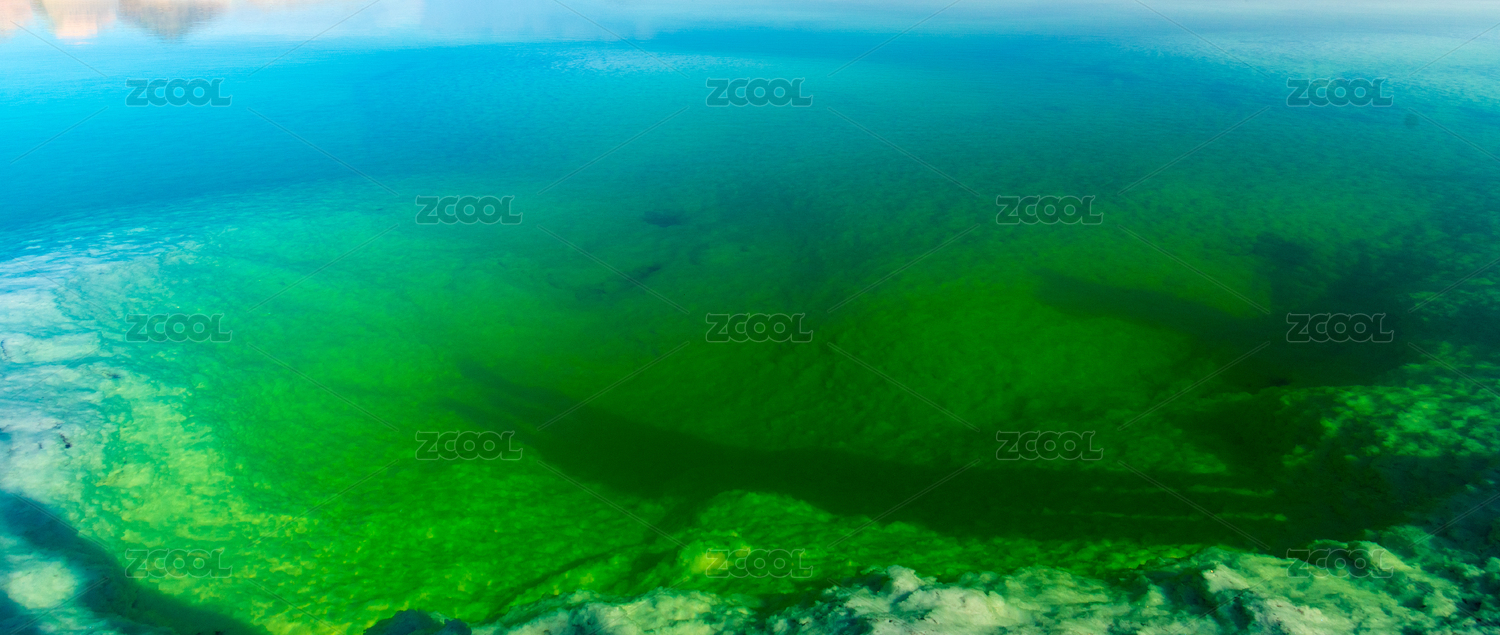 中国四川甘孜川藏线上碧绿的姐妹湖与高山
