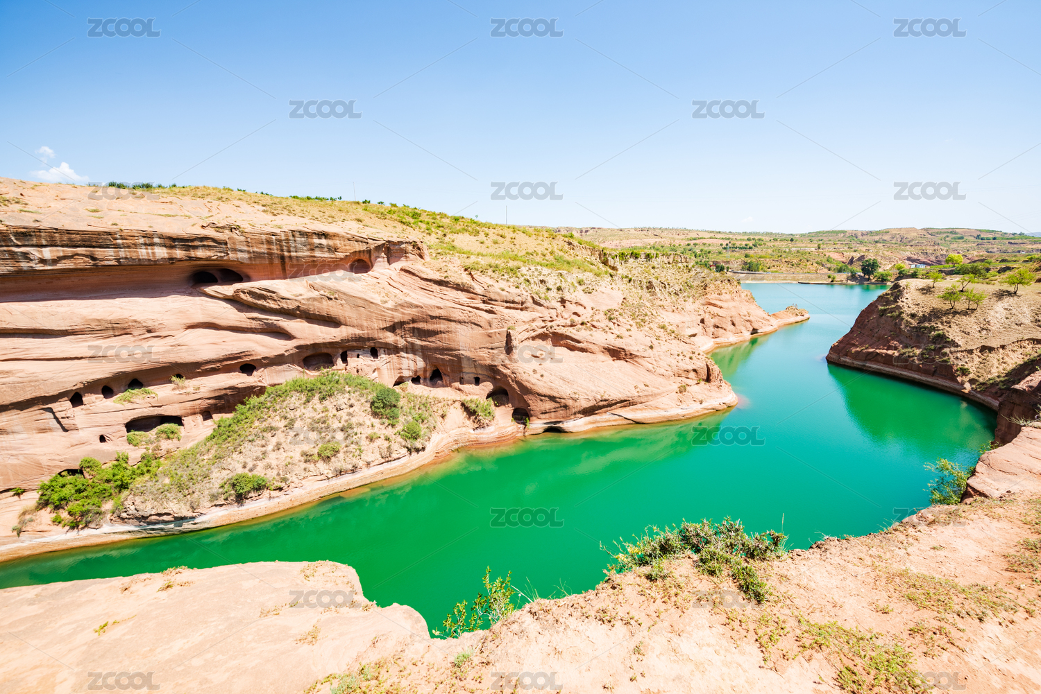 俯拍碧绿的河流流动青山绿水唯美治愈