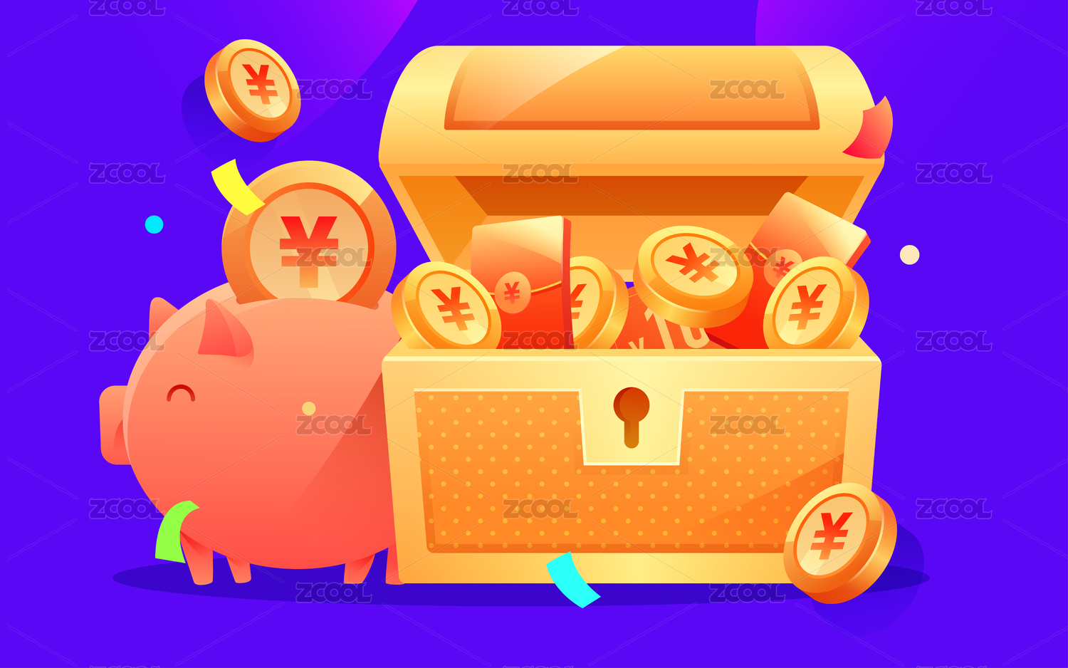 卡通互联网理财红包金融活动背景矢量插画