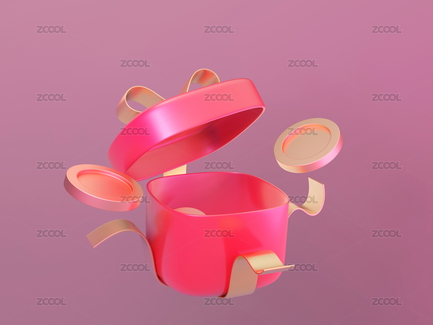 3d光滑质感喜庆活动红色金丝带奖品礼盒
