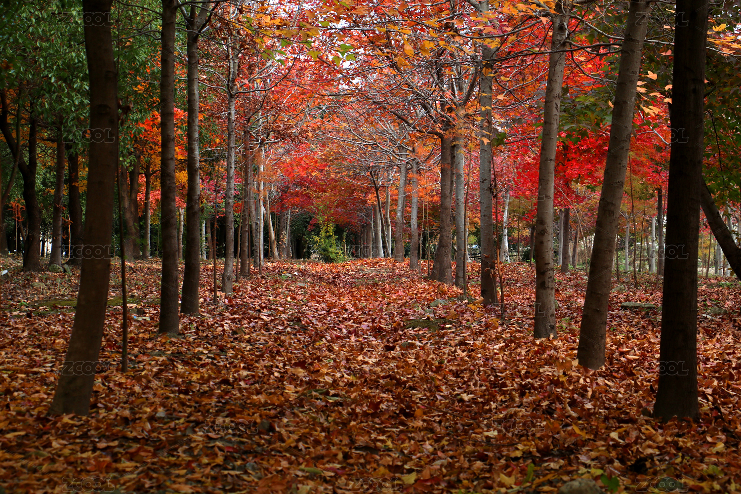 色彩斑斓秋林间