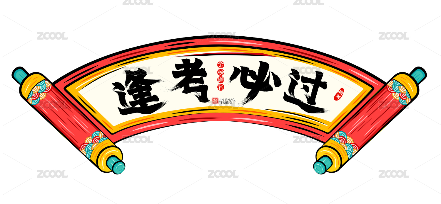 国潮卷轴祝学子逢考必过金榜题名矢量素材