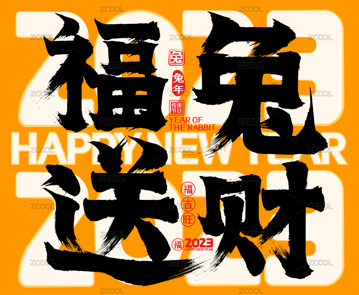 2023福兔送财新年春节兔年矢量书法字