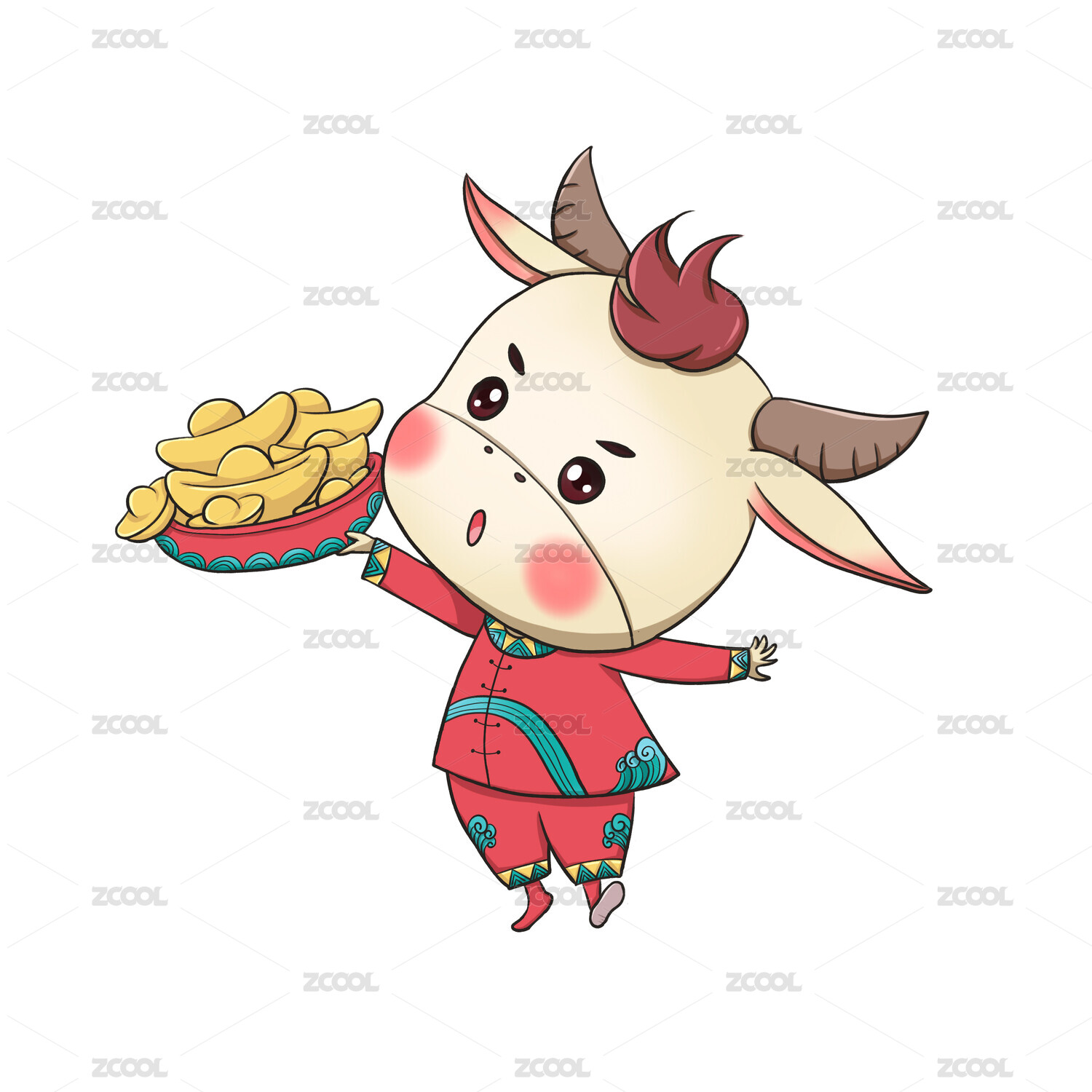 2021牛年很喜庆的金牛送财新年插画