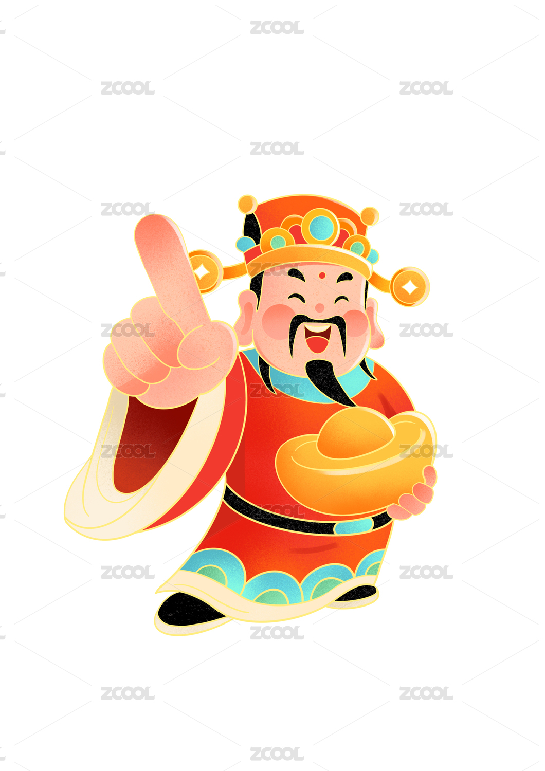 可爱财神送财手势形象