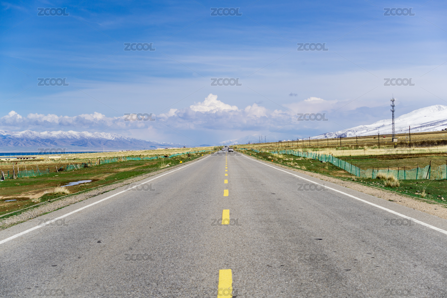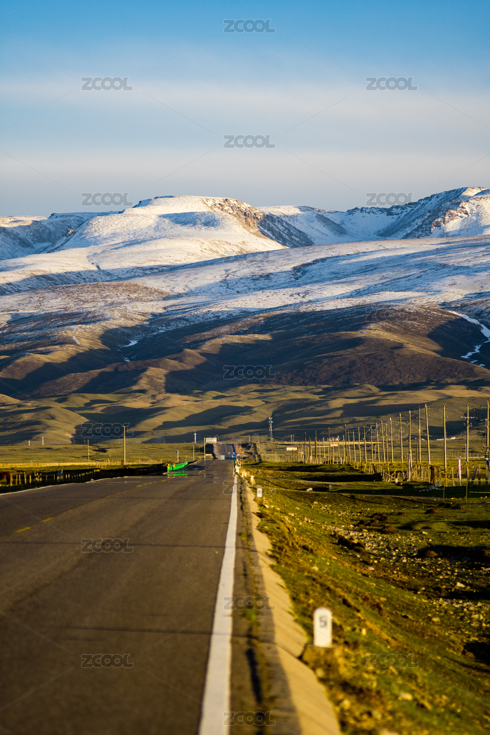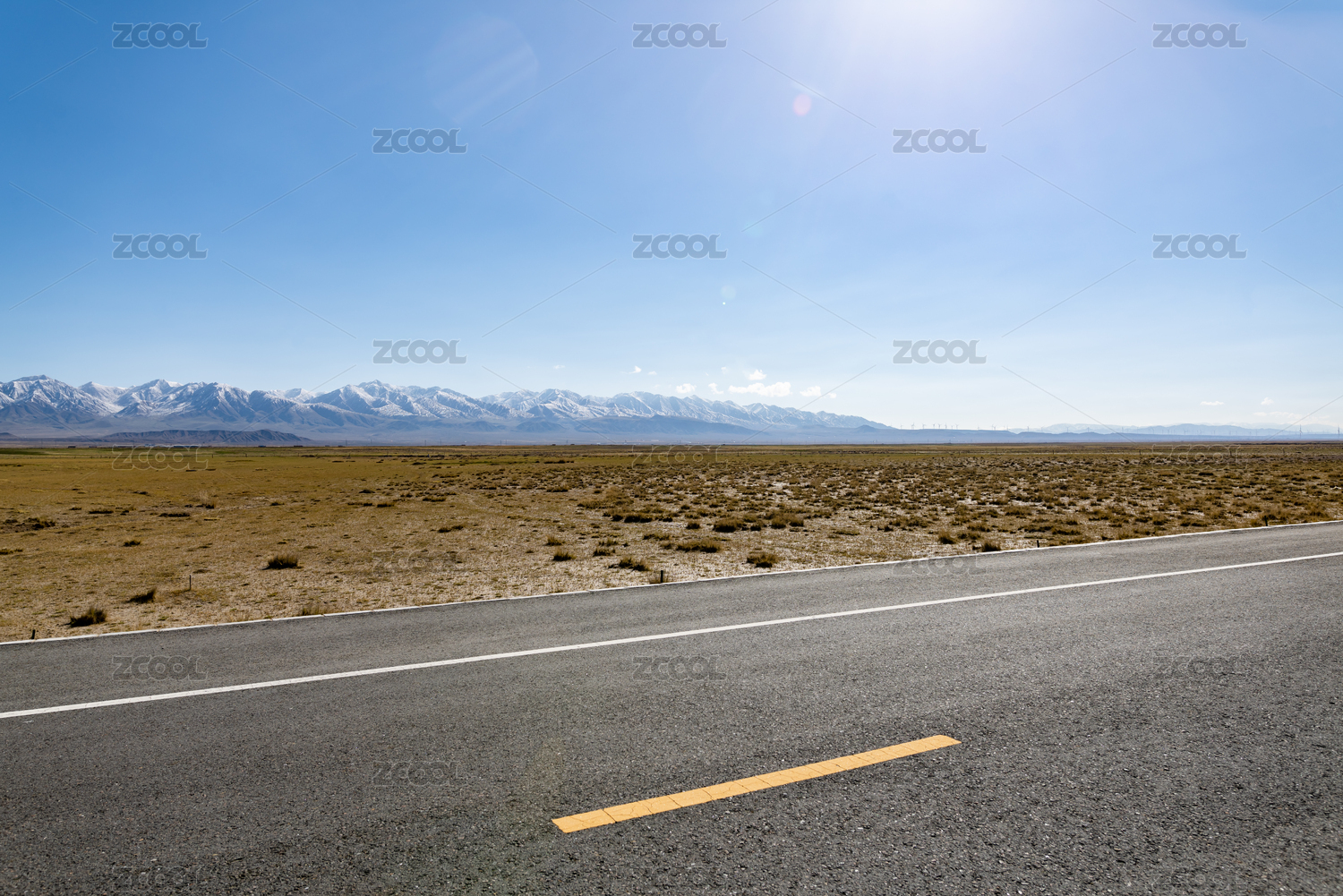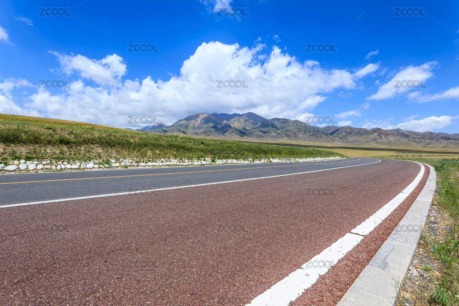中国新疆山脉自然风光和沥青道路