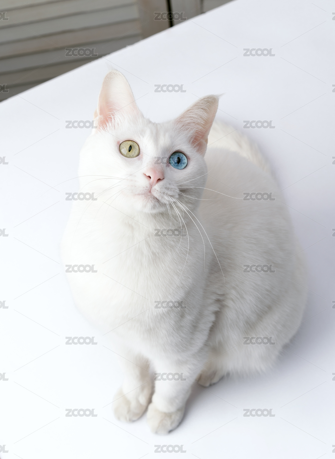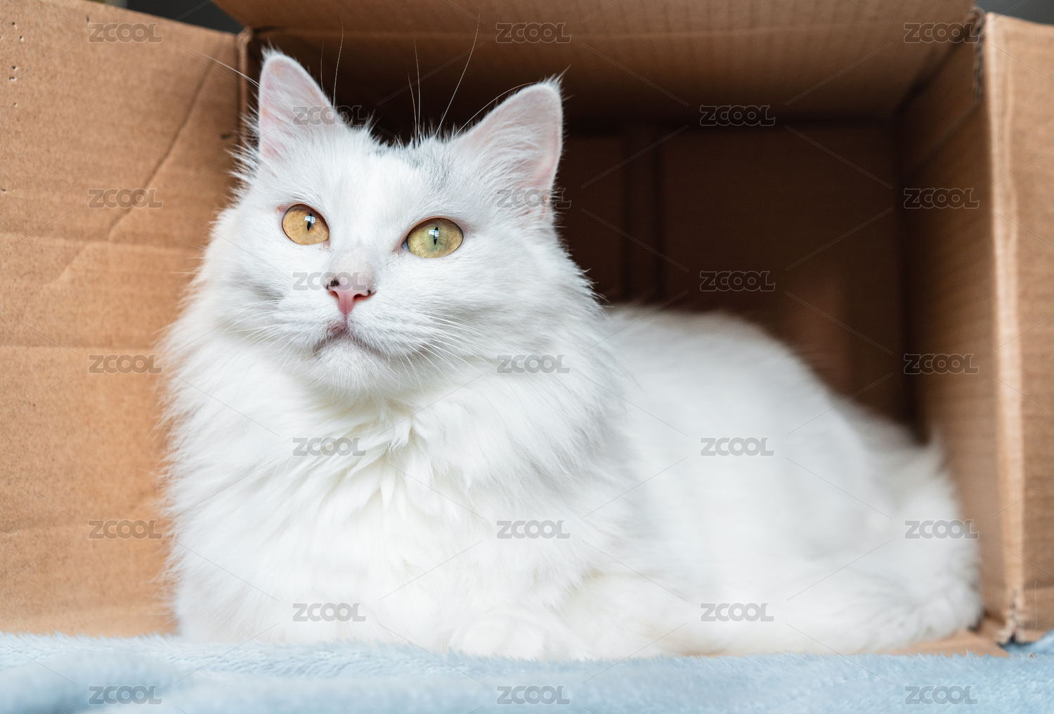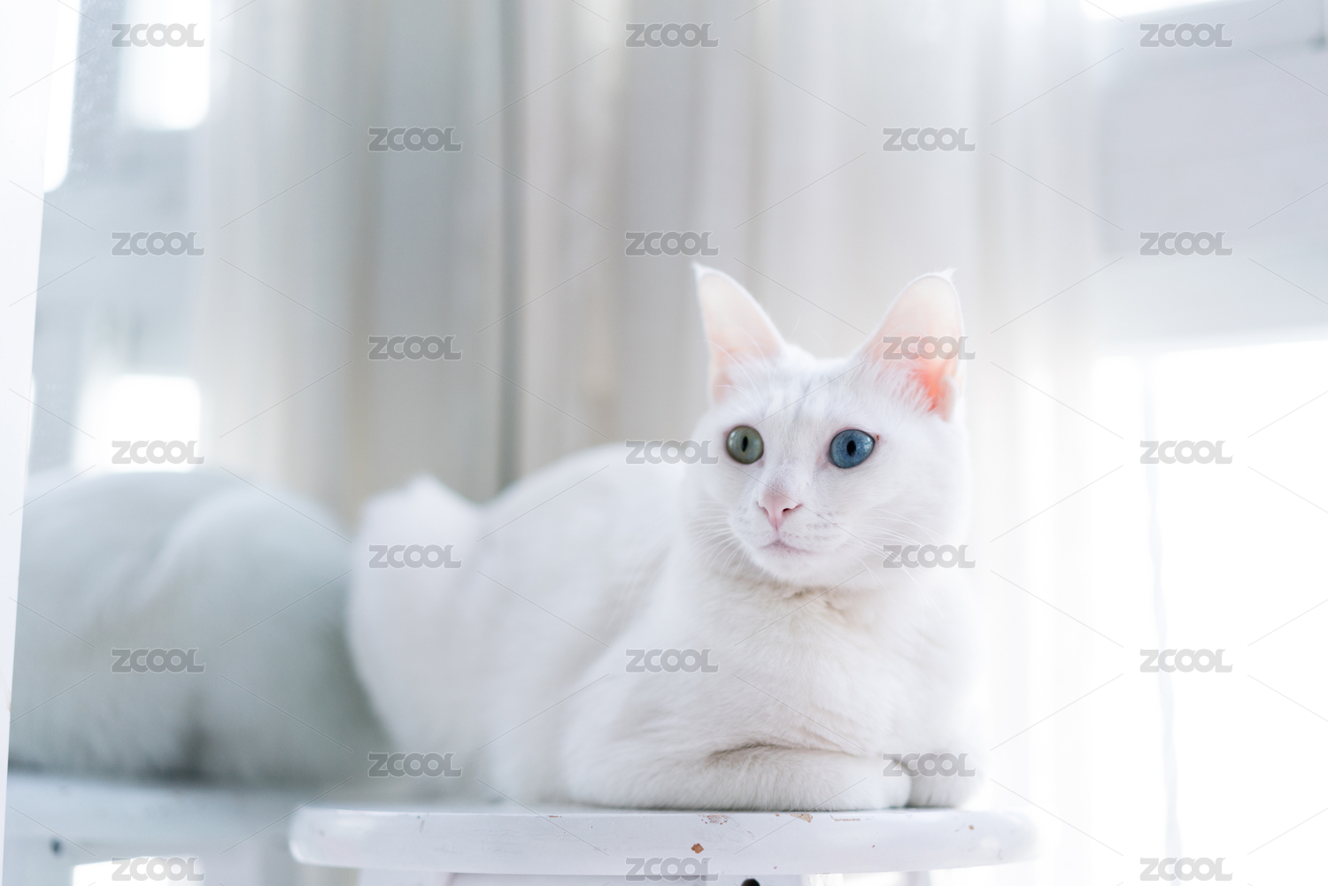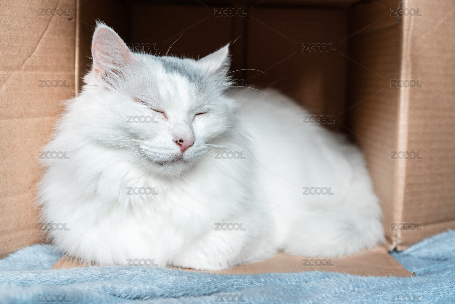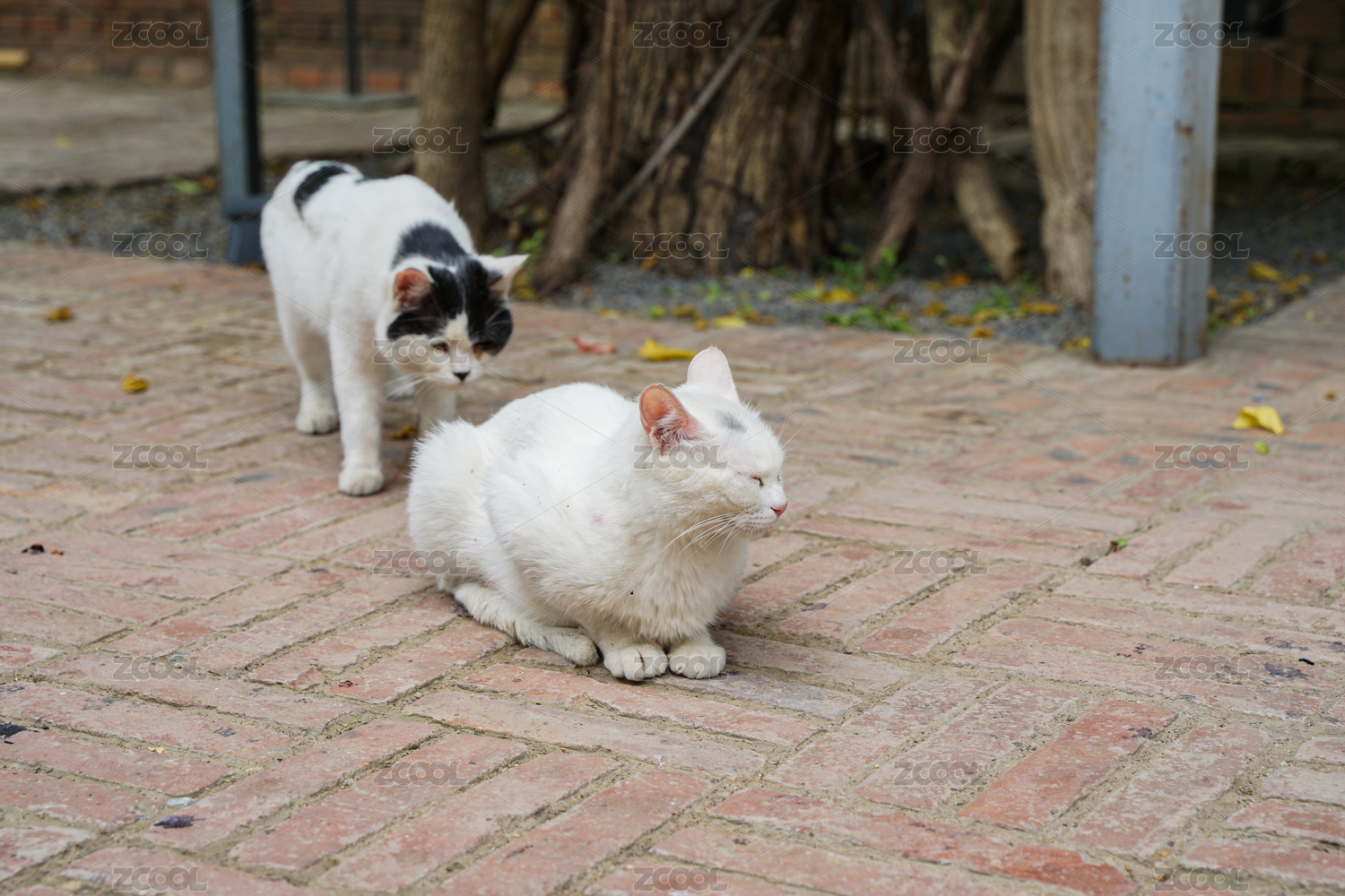 公园里一只趴在石头上被人抚摸耳朵的白猫