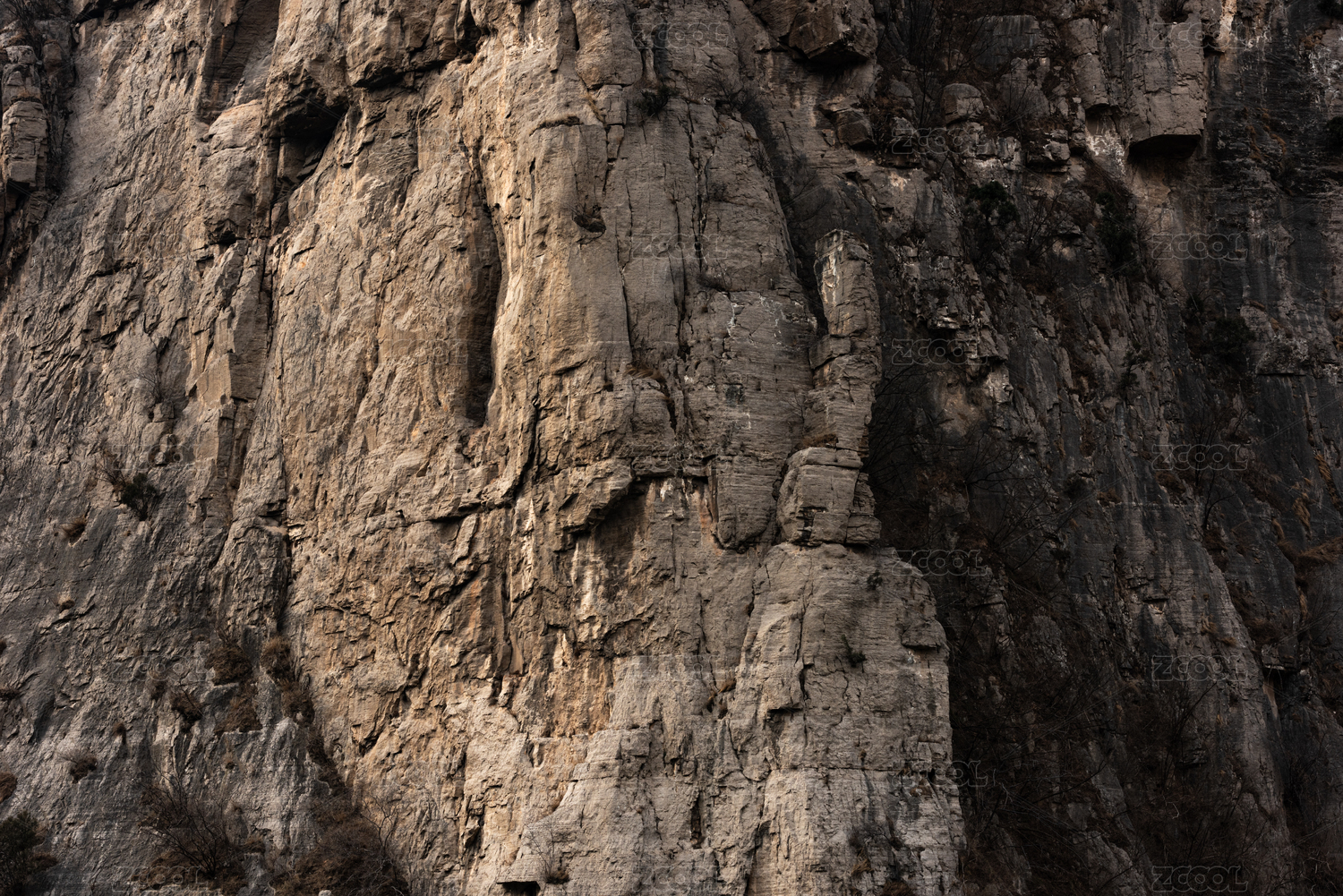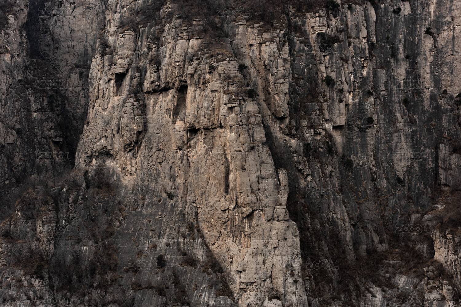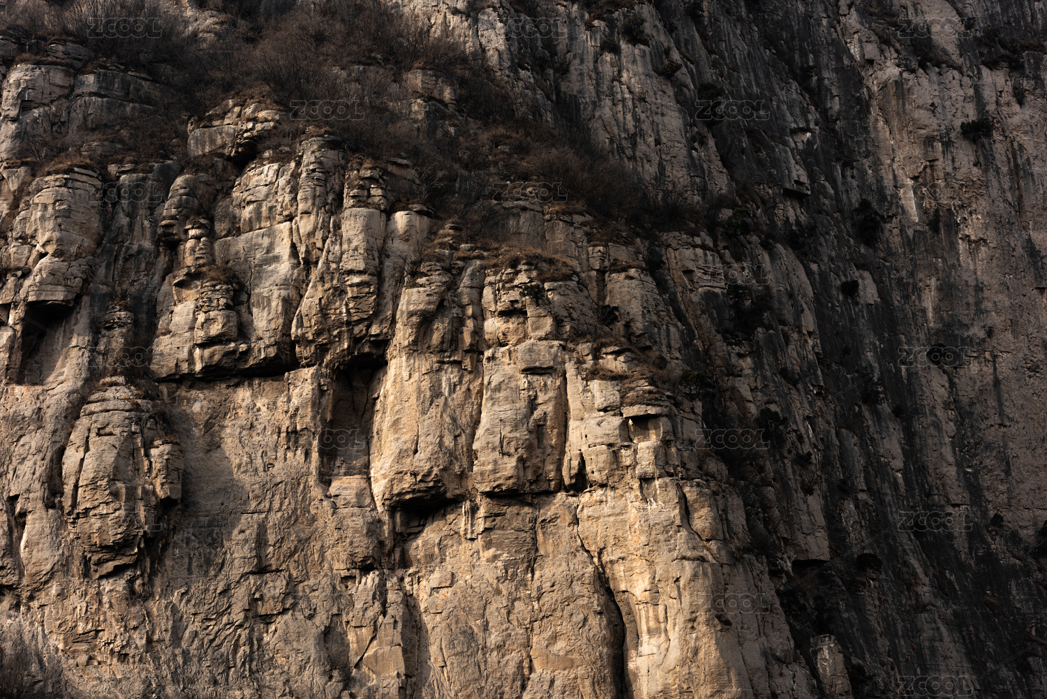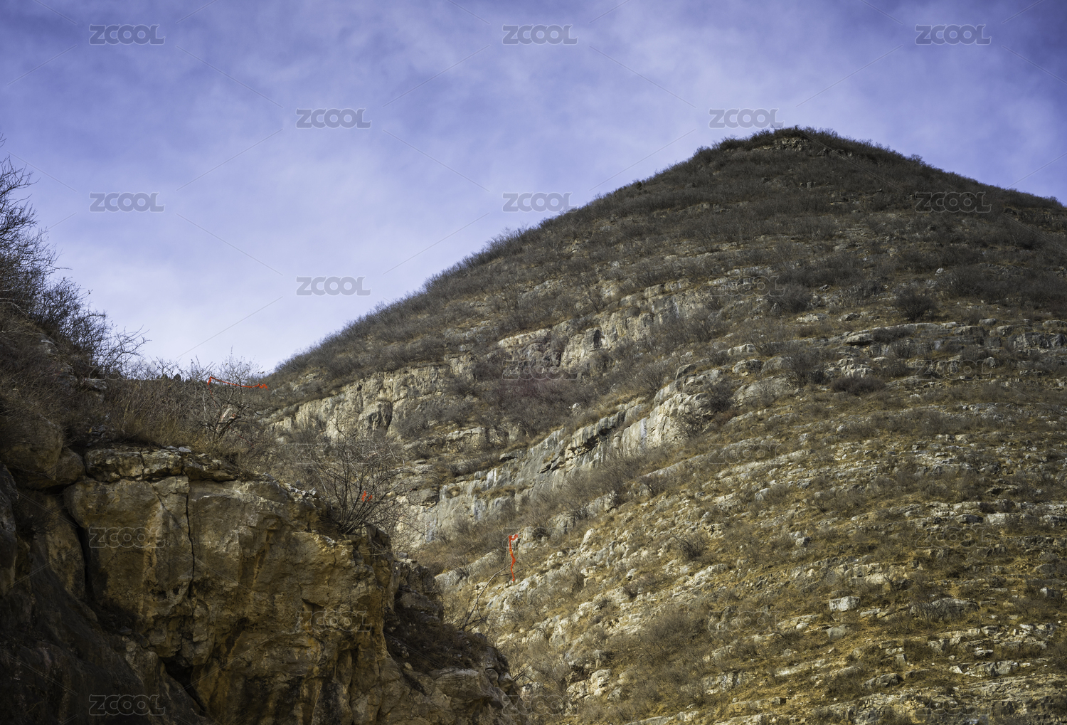 荒凉贫瘠的岩石山体仰视与祈福锦缎