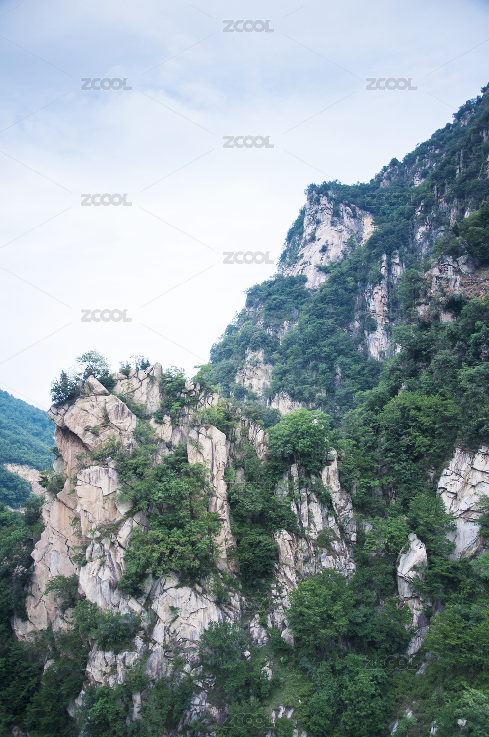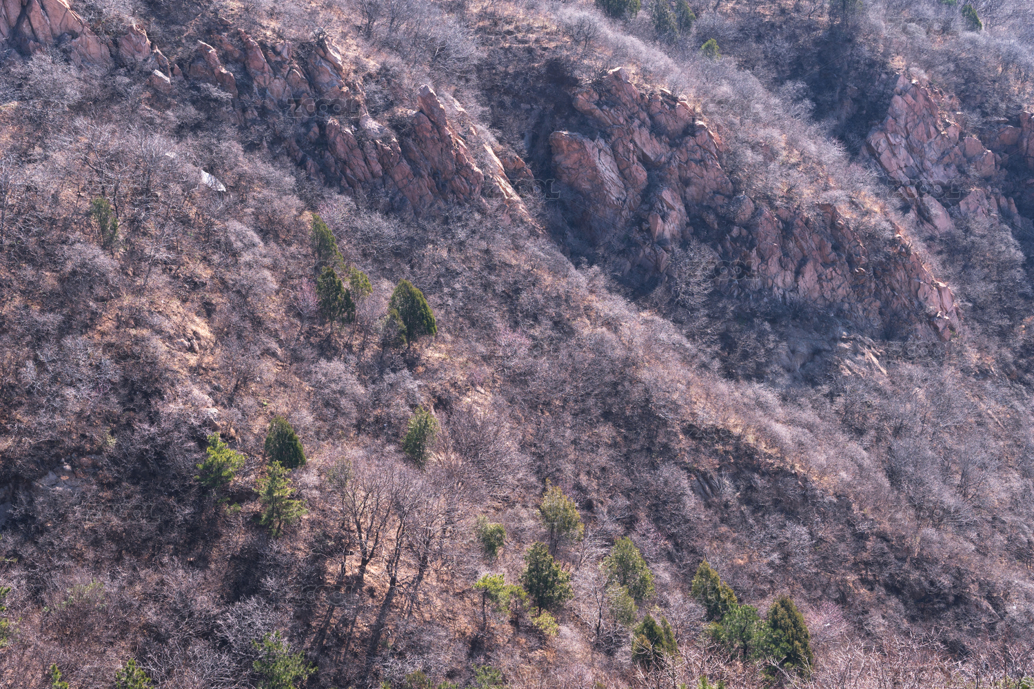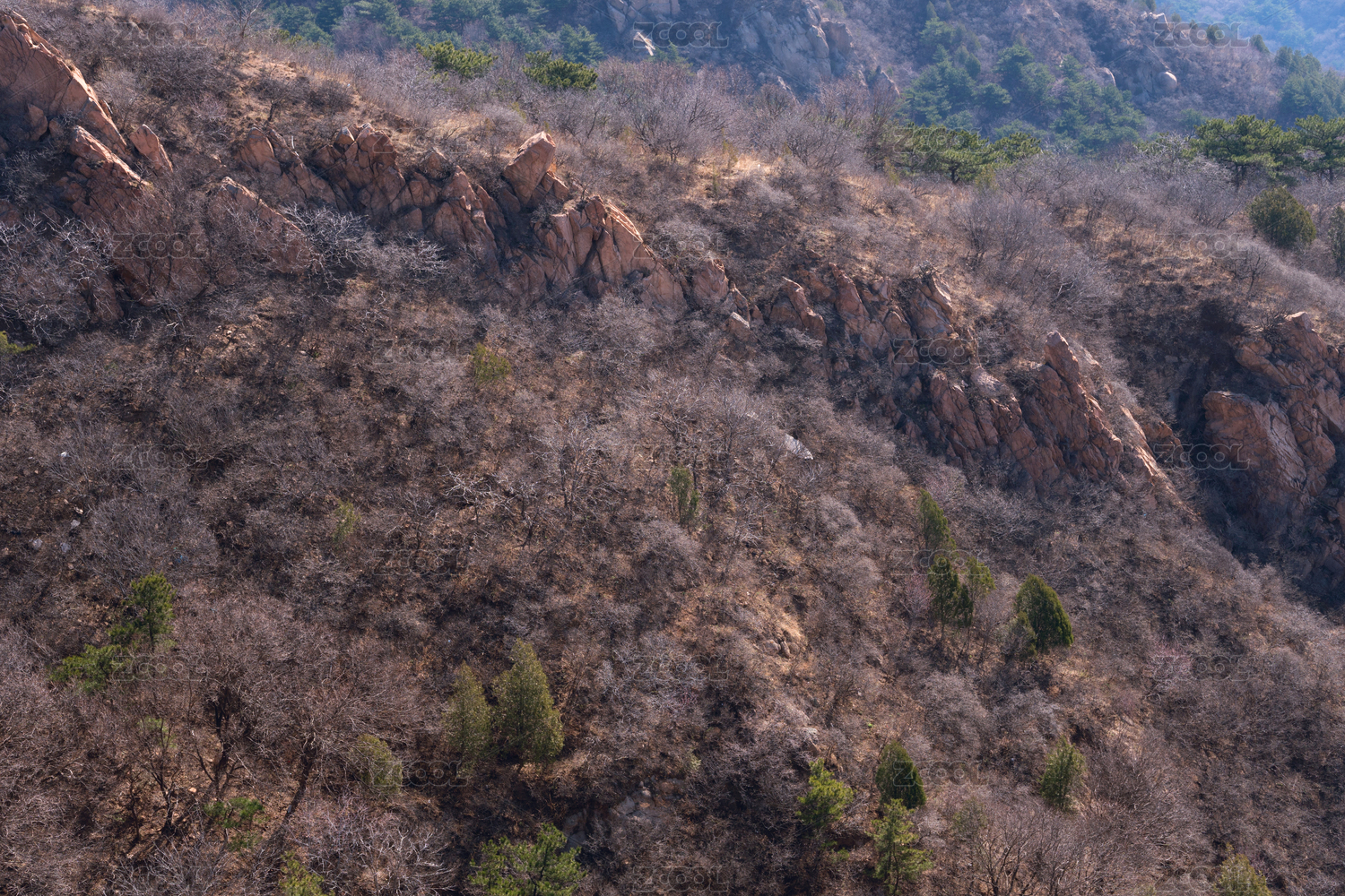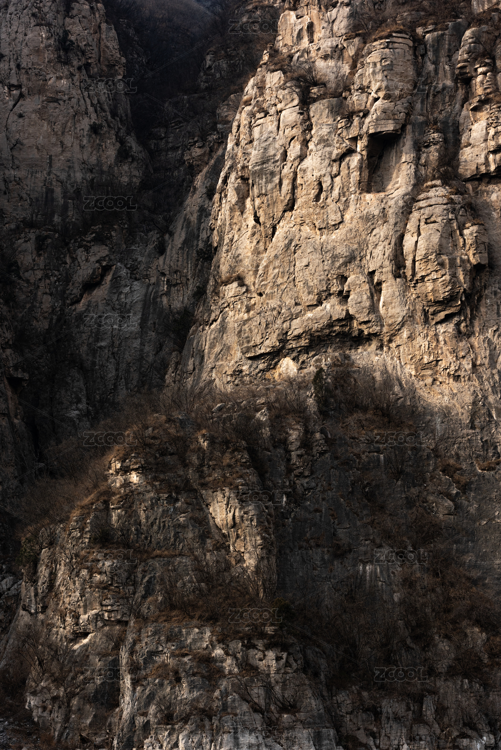 荒凉贫瘠的岩石山体仰视与祈福锦缎