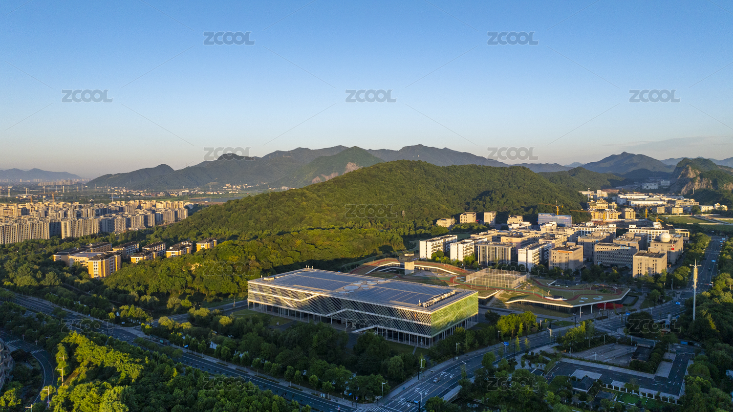 蓝天背景下杭州云栖小镇会展中心的跑道
