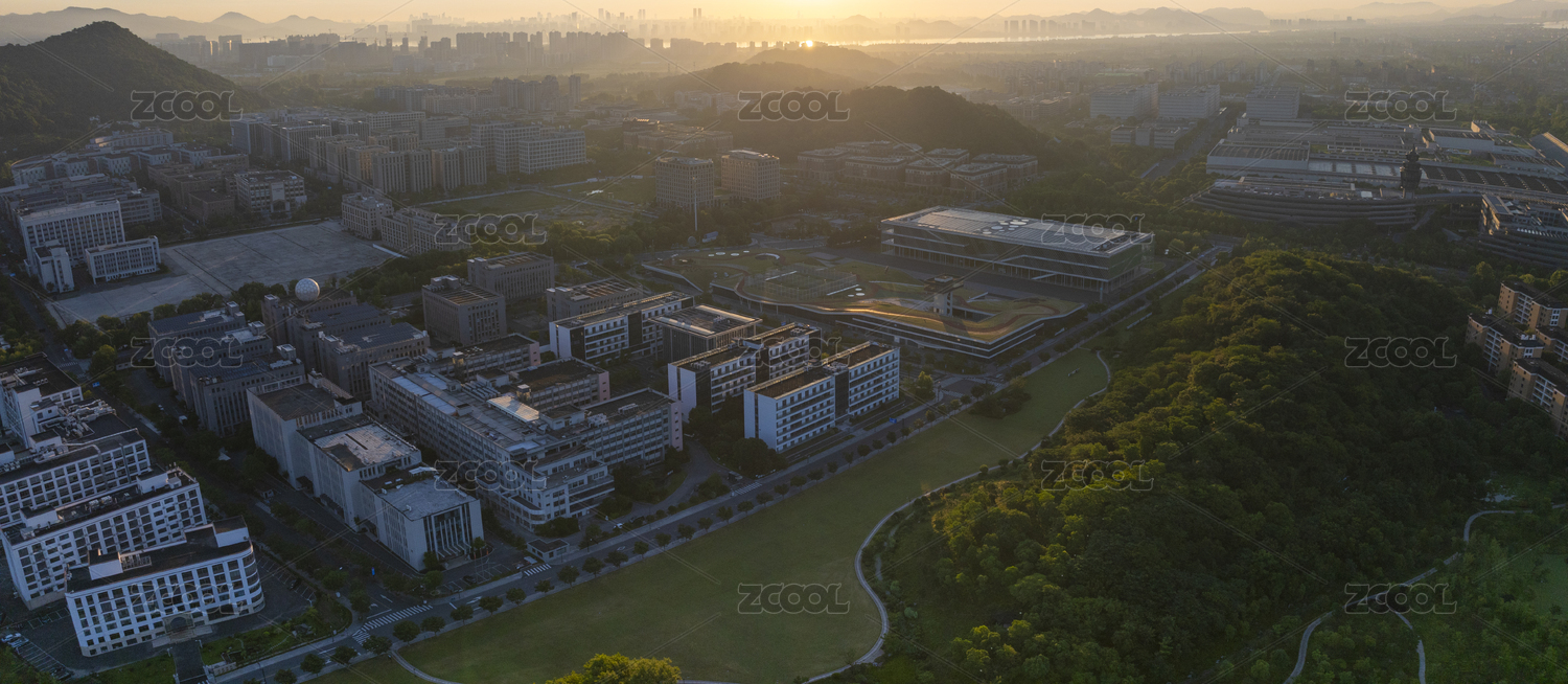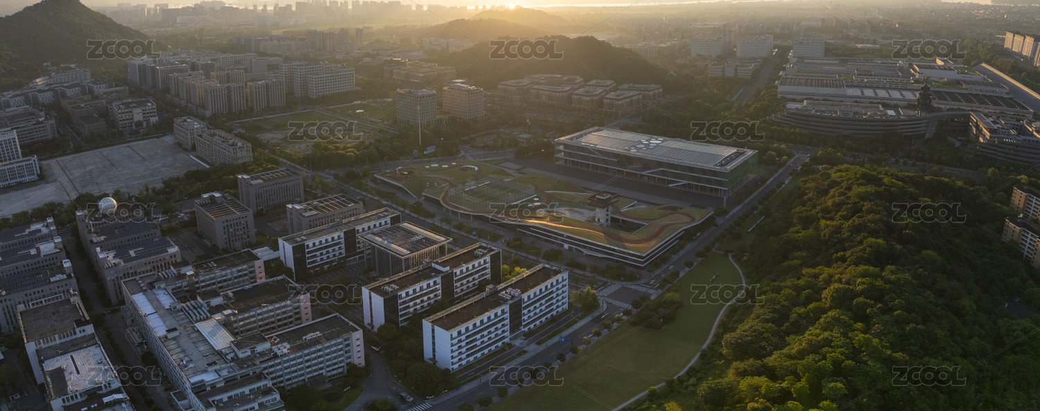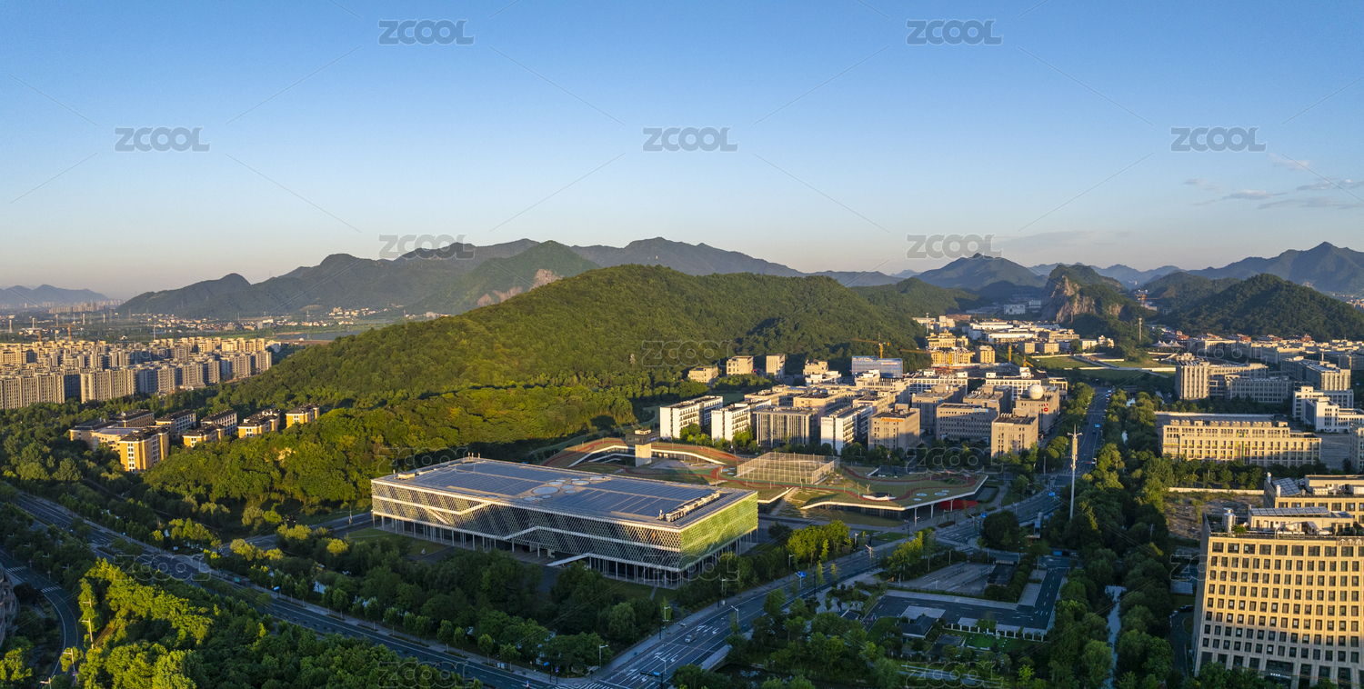 杭州转塘云栖小镇清晨航拍