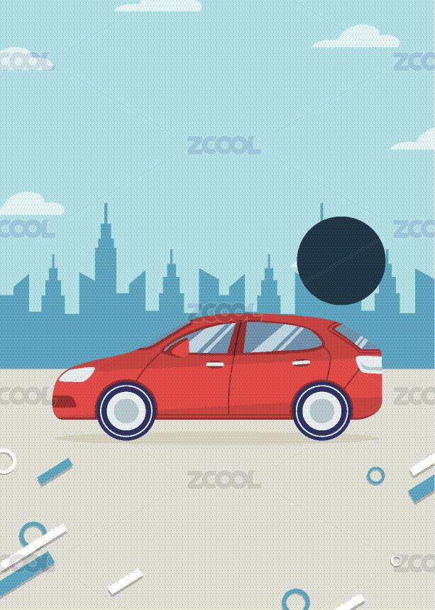 一辆飞驰的大黄蜂小汽车描边风扁平矢量插画