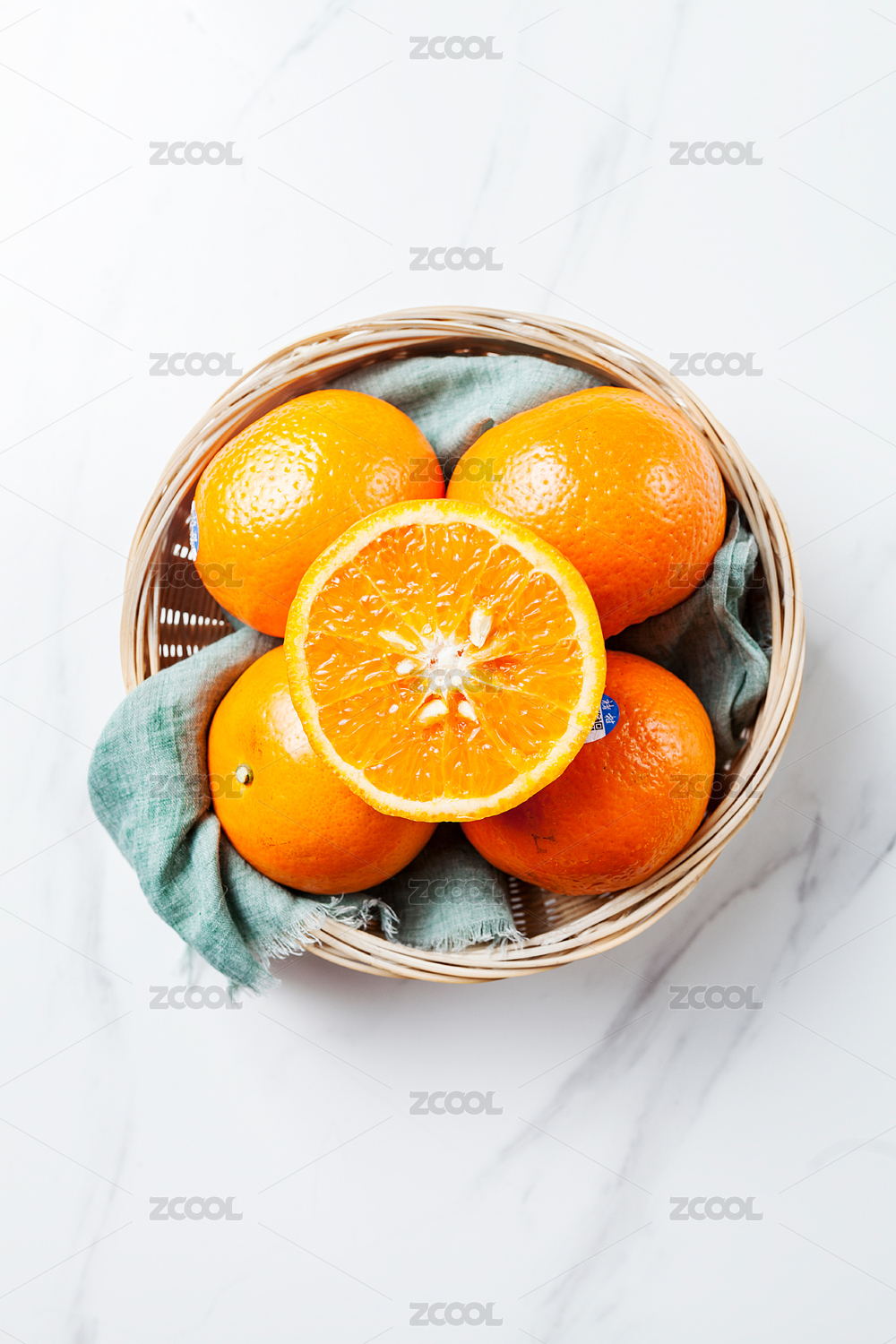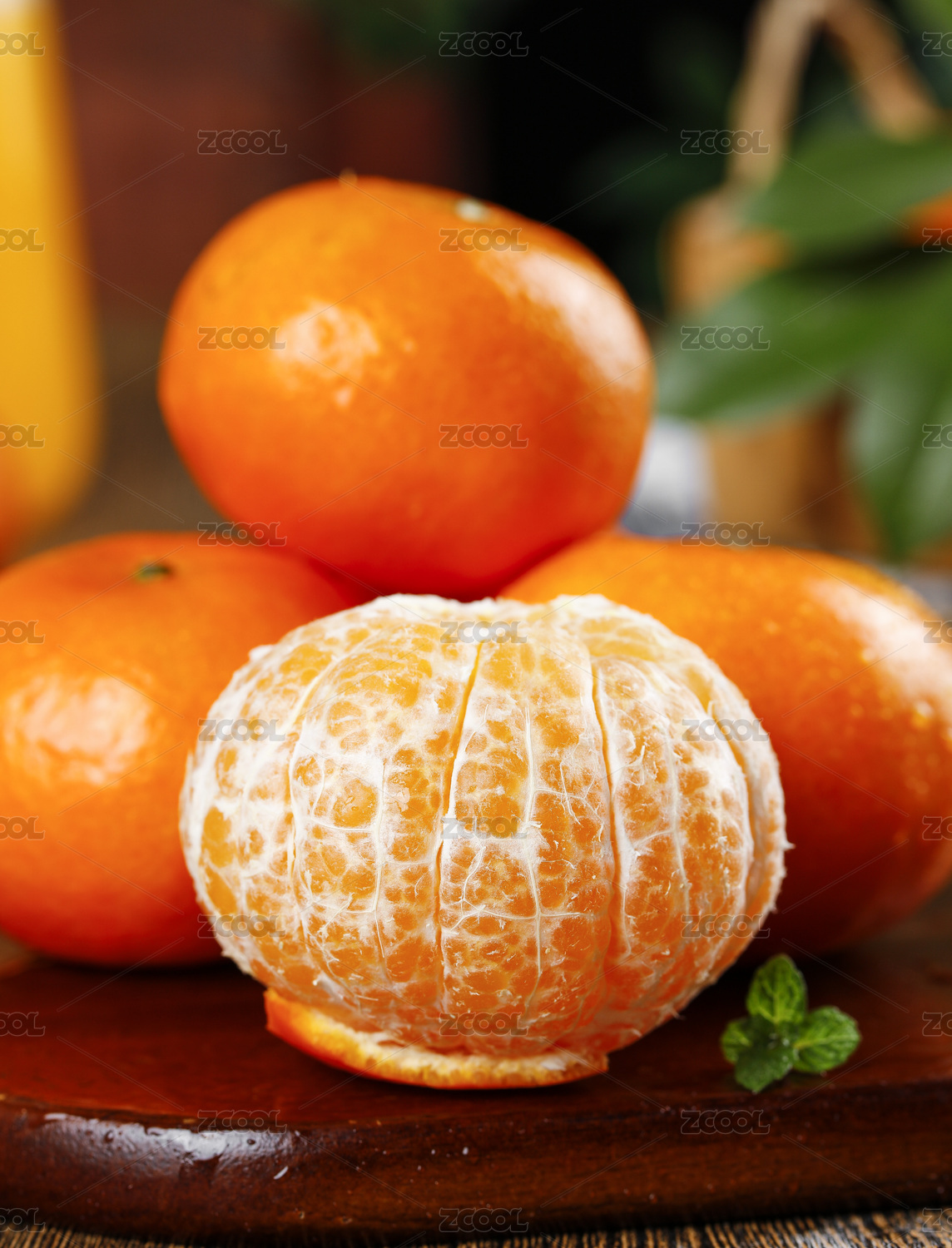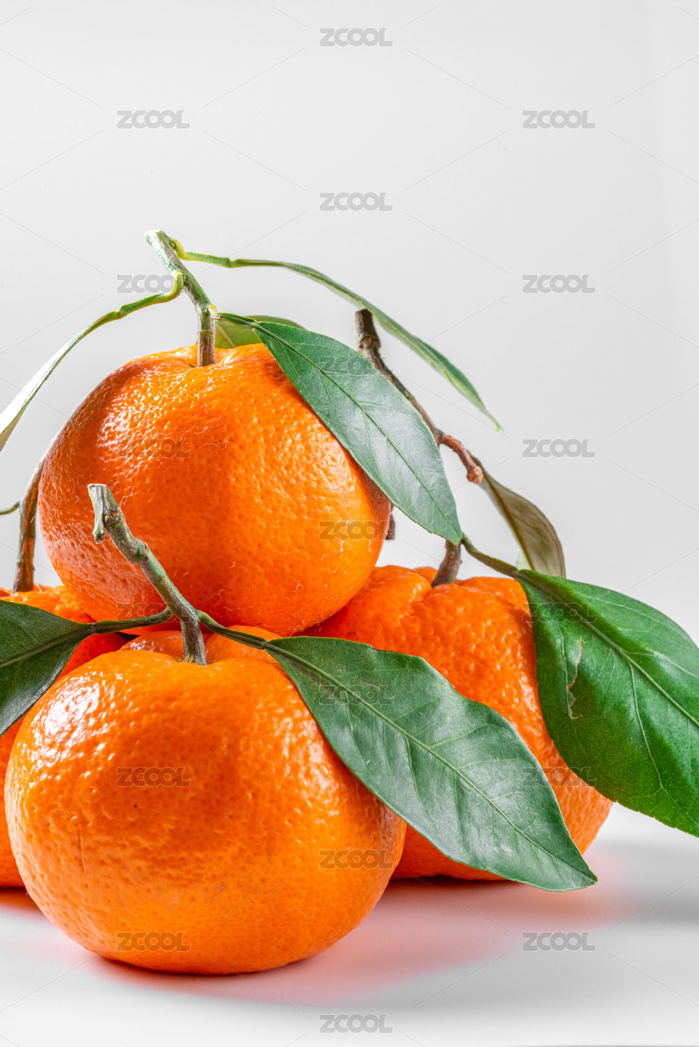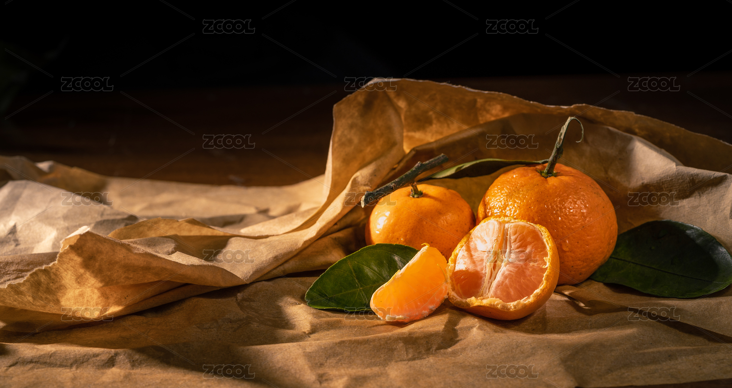桌面摆放新鲜柑橘砂糖橘与绿叶编织垫静物