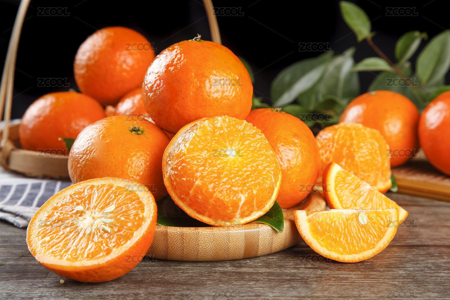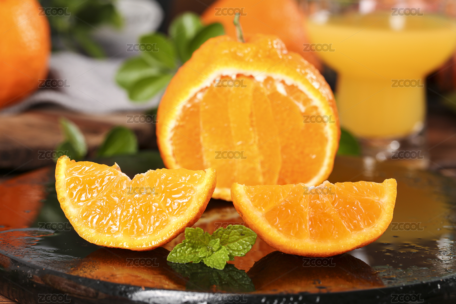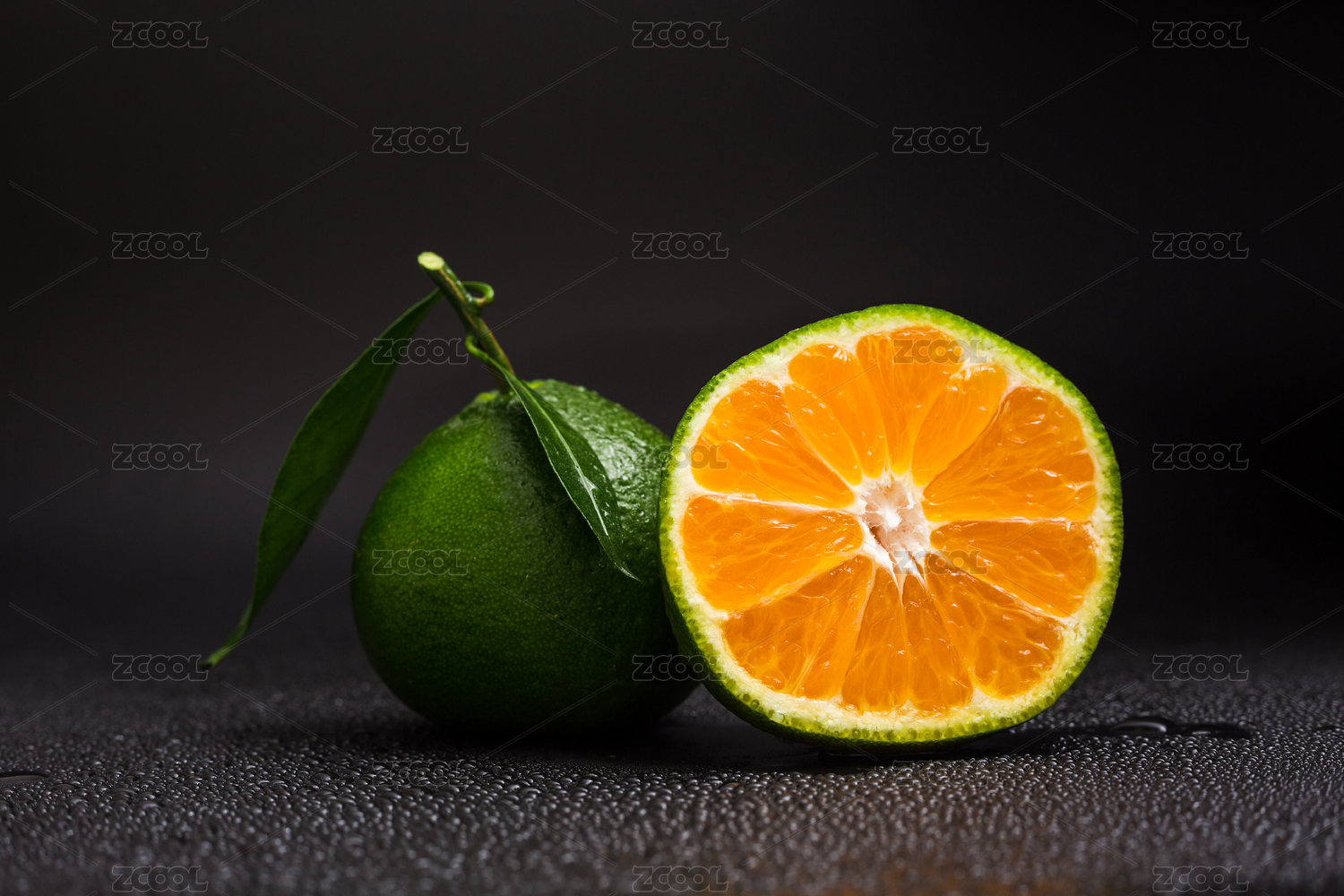 暗色背景下摆放这多个新鲜柑橘和橘子瓣