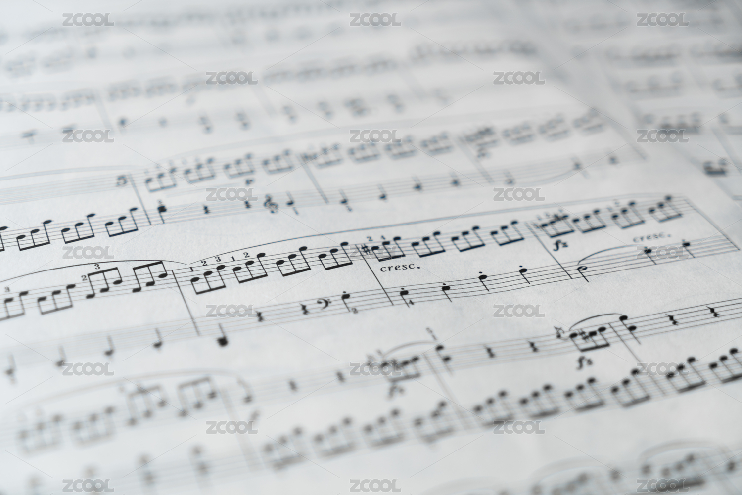 印有乐谱五线谱的纸张散落在桌面上