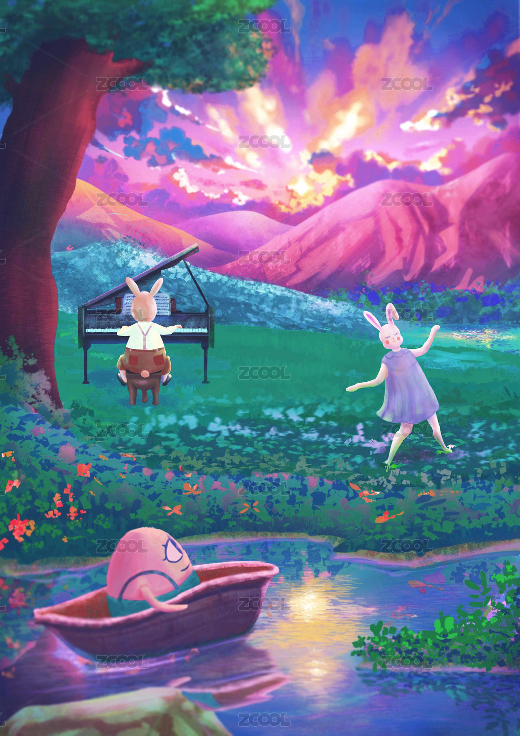 森林里兔子弹着钢琴曲