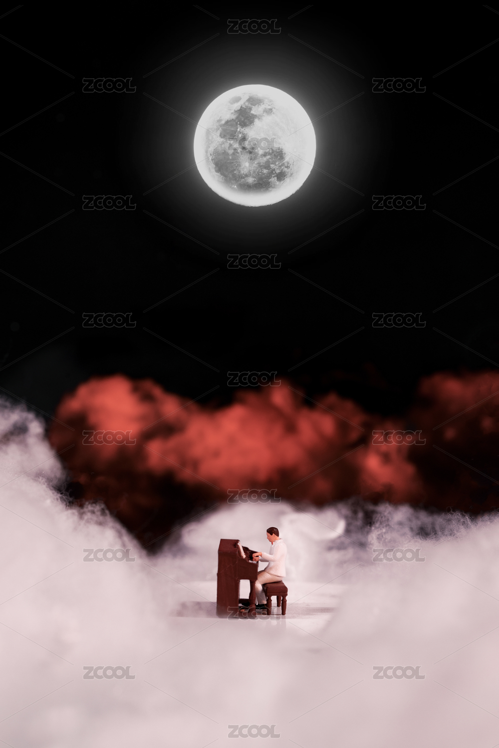 微缩创意构思曲谱的钢琴家