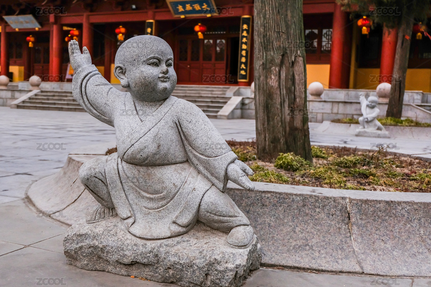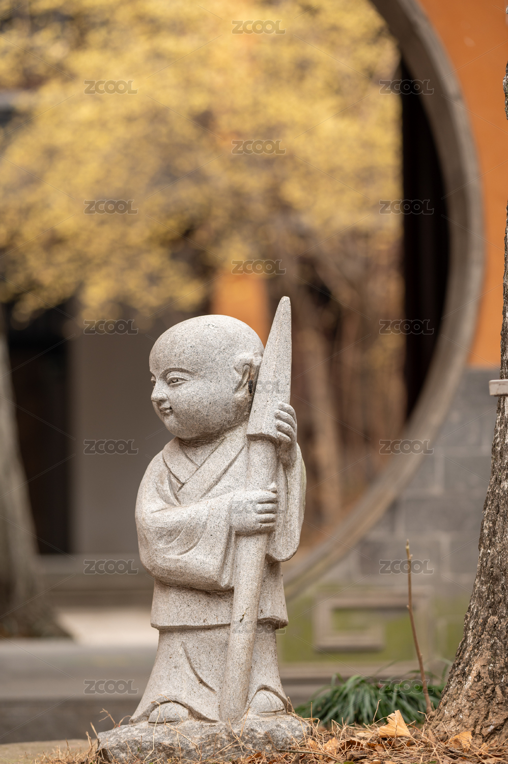 中国浙江省杭州市灵隐寺内的小沙弥石像