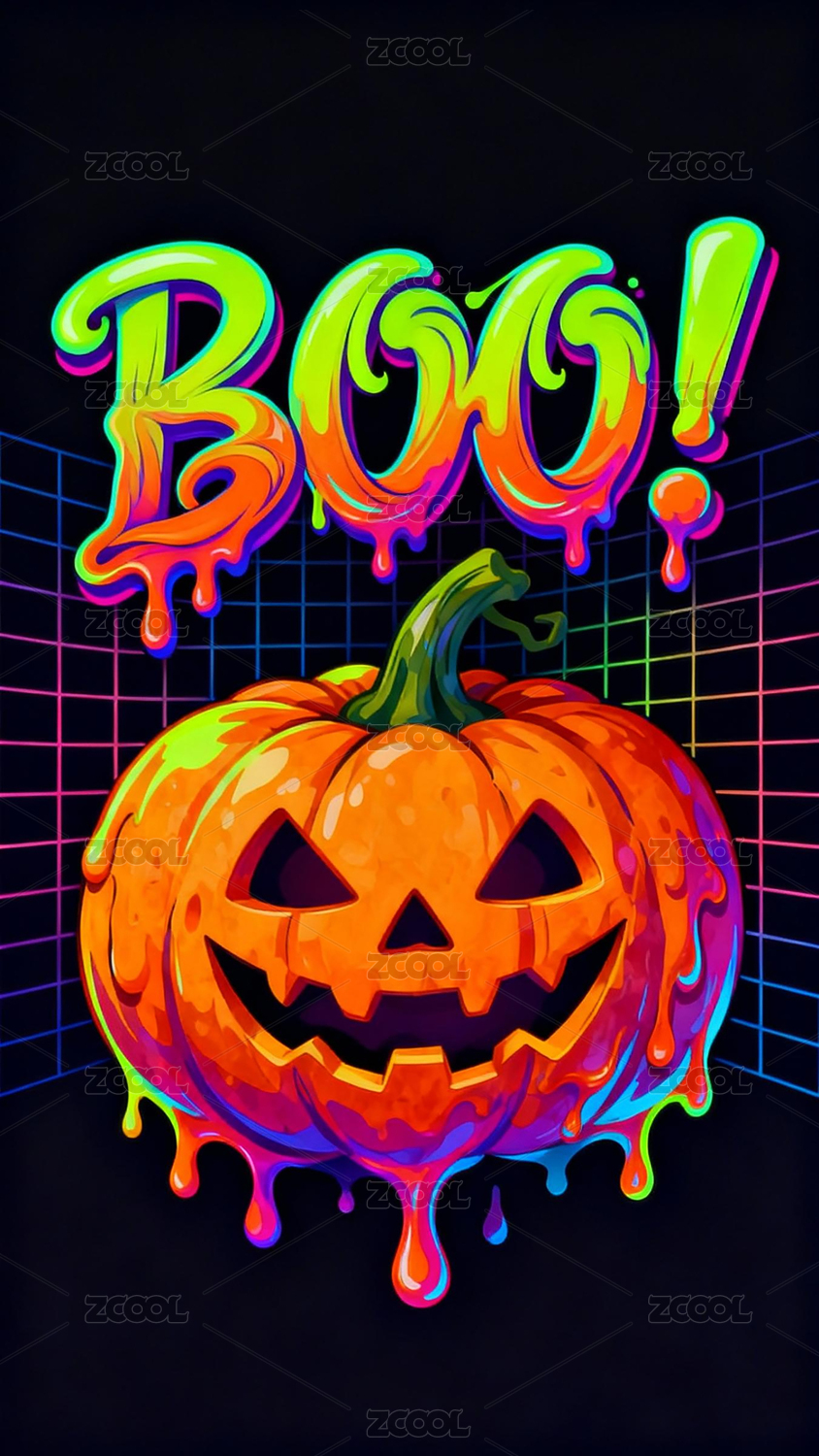 色彩绚丽、带有“BOO!”字样的创意万圣
