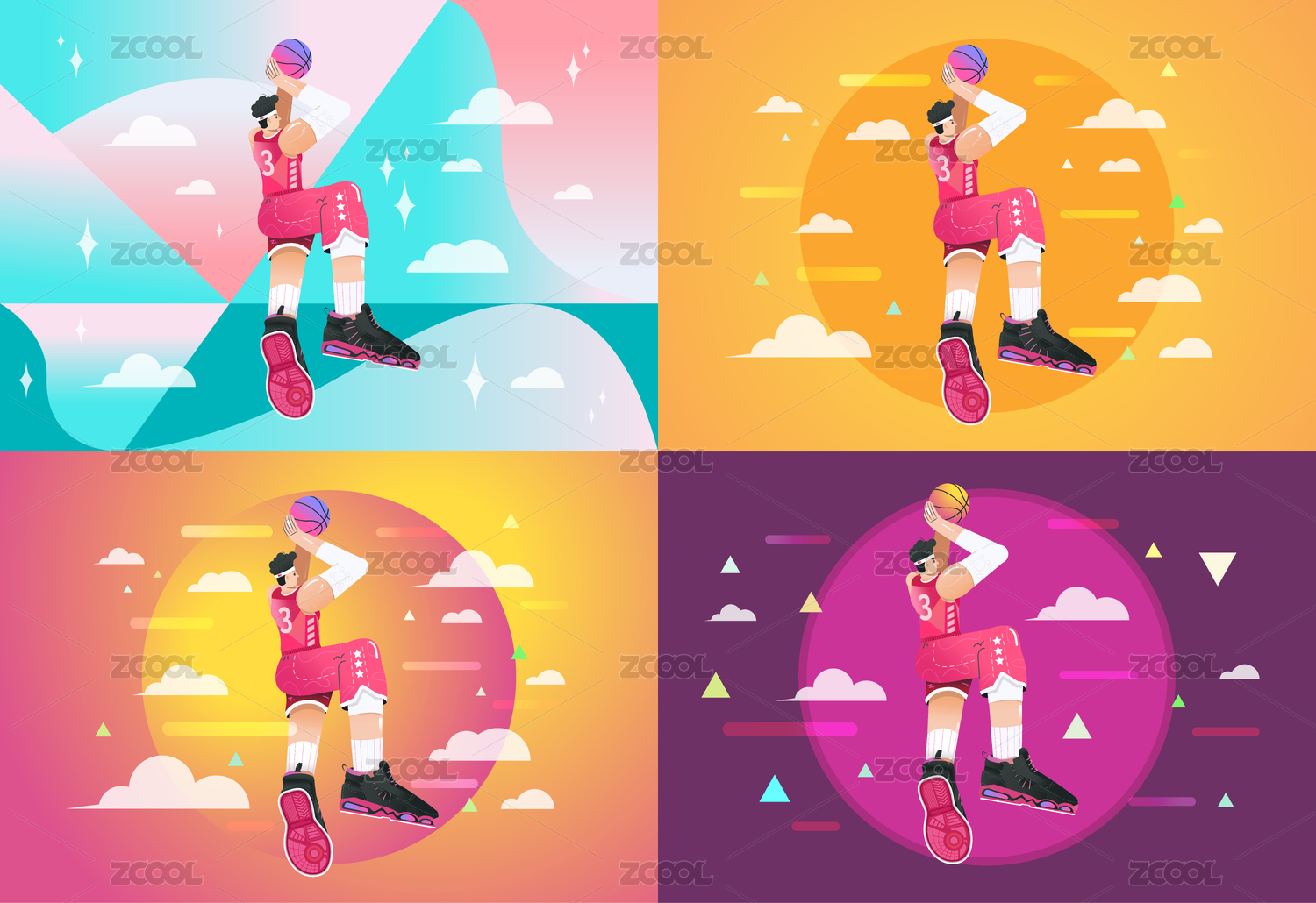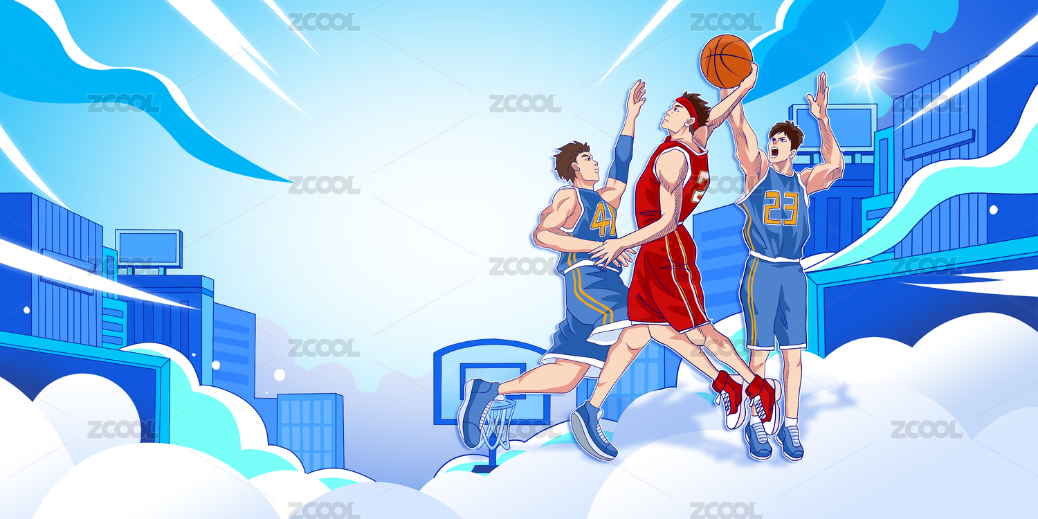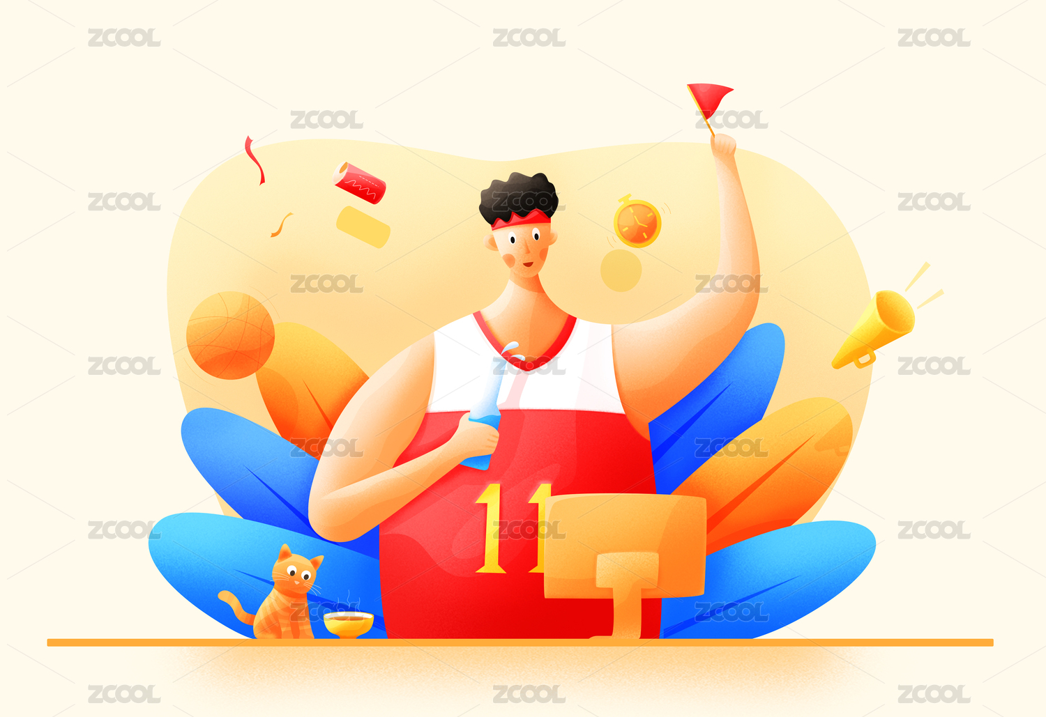 插画广告横幅篮球比赛青春运动锻炼哑铃校园
