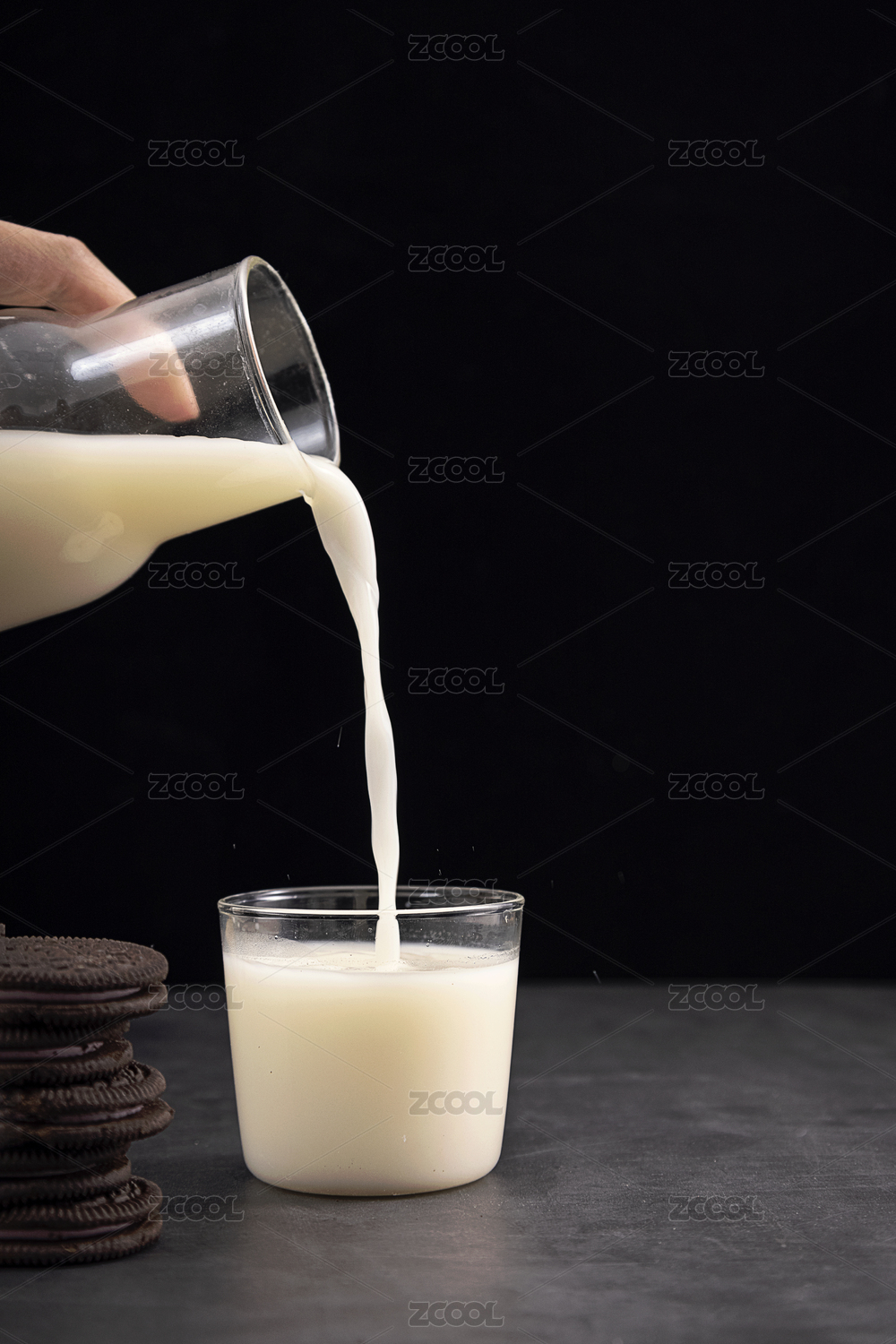 倒牛奶与巧克力夹心饼干
