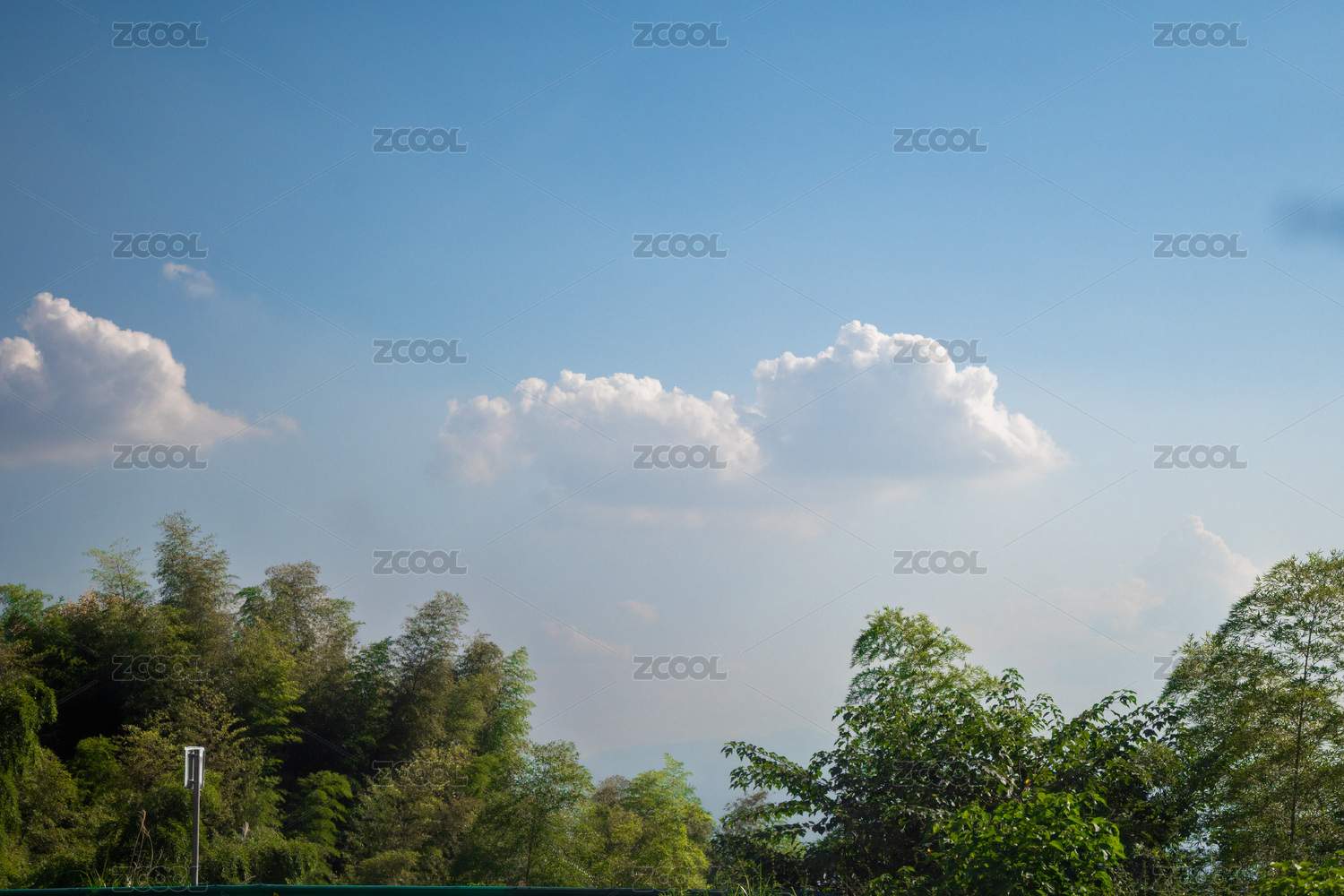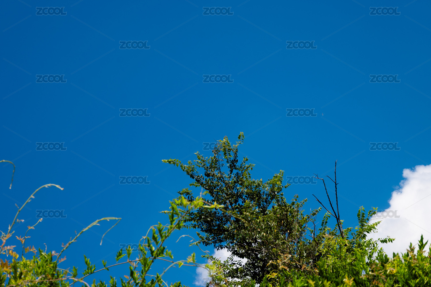 蓝天白云下的树丛