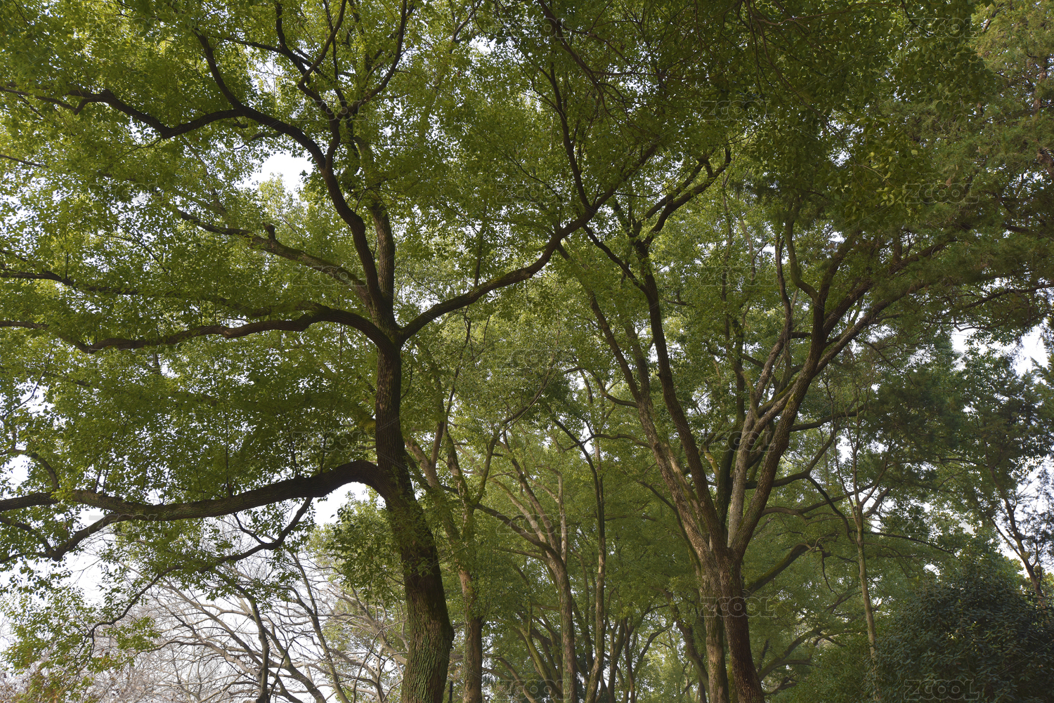 清晨上海共青森林公园树丛里阳光照射