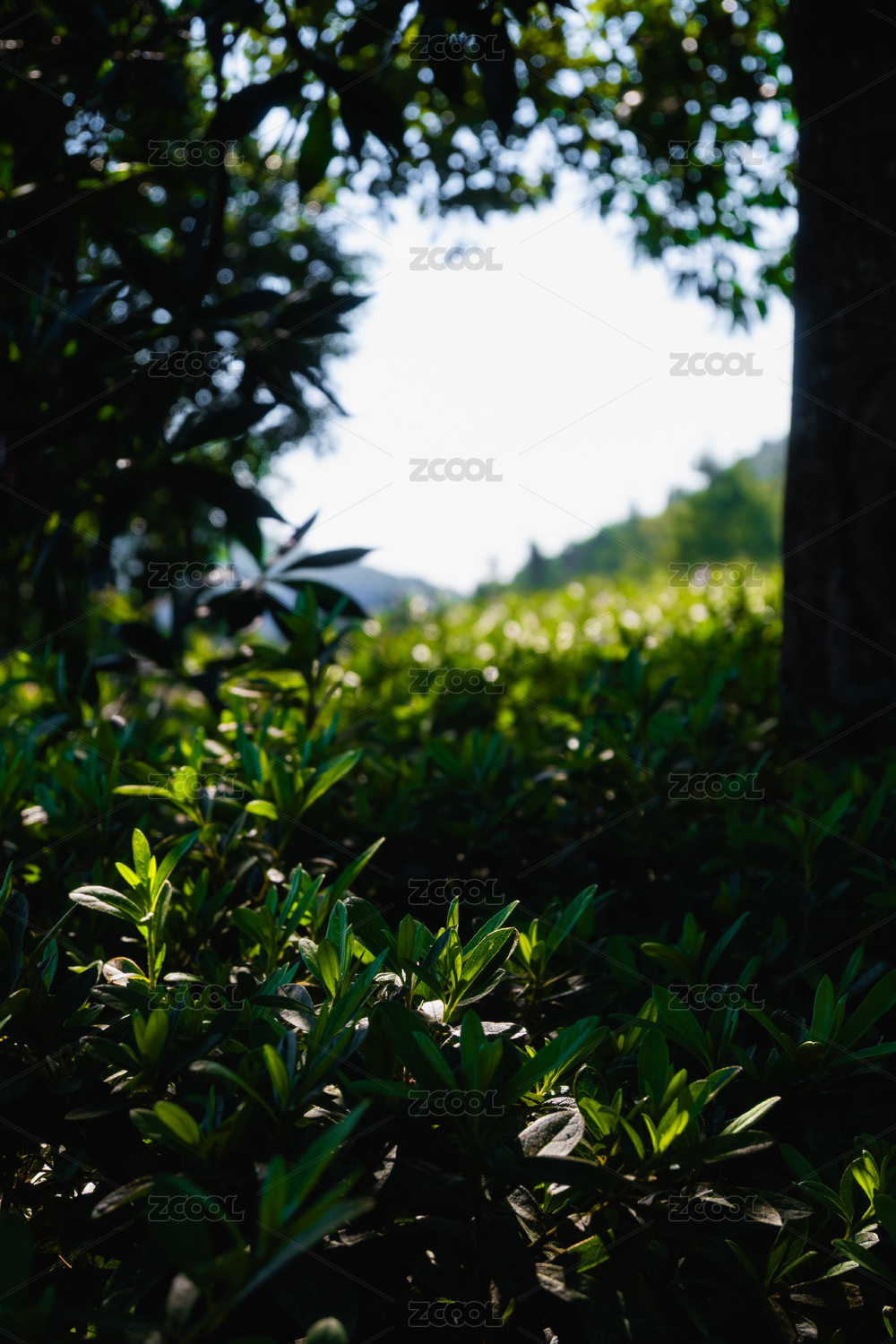 阳光下的树丛