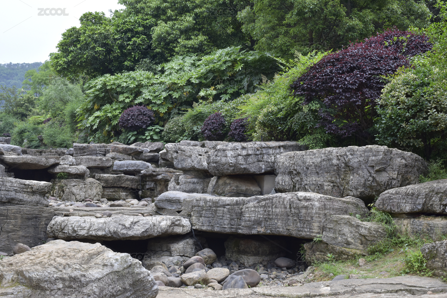 树丛下的岩石